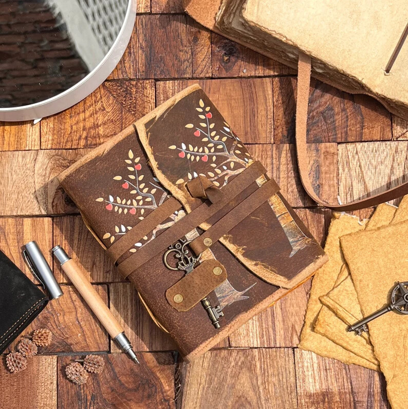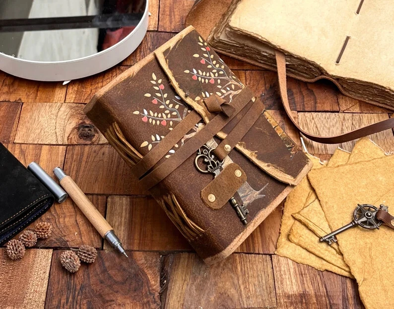 Classic key bound Genuine Leather Journal, Leather Notebook, Custom Engraved Gift for Women and Men Handmade Paper, Travel Journal gifts • Name - Key bound Journal • Size - 7×5 inches 8 x 6 inches 10×7 inches 13×10 inches • Lock - C-Lock brass • Leather quality- genuine • Paper- Vintage deckle edge old paper OR Handmade plain white paper • 100 Sheet (200 pages on both sides) ● Antique Paper - Vintage Journal is made of unique vintage paper which looks like it was pulled from history. You will love the old looking handmade cotton paper (200 pages) which is unique to our vintage journals. ● EXQUISITE & UNIQUE SEMI PRECIOUS STONE: The vintage journal is embossed with a special stone called “yellow moonstone” which helps to reveal inner truth within yourself and encourage self-awareness and self-expression. We have taken extra to make sure that the embossing is perfect in every piece. ● VINTAGE LOCK AND STURDY BINDING - The vintage lock will keep all your valuable writing locked inside. Sturdy hand-stitched binding to make sure that no paper comes out loose from your vintage notebook. ● A sketchbook is great for keeping by the bedside to jot down dreams, or for use as a diary or journal. ● It is a truly unique and wonderful gift for a friend, the men, women, and Wiccans in your life! or to treat yourself to as a special keepsake ● our journals are influenced by symbolism that is derived from the Wicca/Pagan community, creating a personalised space where your inner creative genius can flourish. ● The paper is made from sustainable cotton and jute canvas. The paper is acid-free and pH neutral therefore is a timeless piece of art. ● Use Any Kind Of Pen - Sketch, Doodle, Write on your journal notebook with a Calligraphy Pen Fountain Pen, Brush Pen, Ball Pen, Acrylic Colours, Watercolour and many more. ◆ {Multiple Uses} ● The vintage leather journal is a perfect sketchbook, Home Gifts, gifts for him, gifts for her, gifts for him Christmas, gifts for him birthday, harry potter gifts, potter gifts, harry gifts, wizard gifts, books of the wizard, Harry Potter books, Potter SpellBook, Phoenix, Anniversary gift. Mother of earth Leather Journal Book of shadows Grimoire journal Blank Spell Book PAYONEER I accept Payoneer. COUNTRY: Shipping Worldwide from INDIA TYPE: Standard Int'l Flat Rate Shipping OTHER: I usually ship within 24 hours after receipt of payment. The delivery time from Ukraine: 10-25 days. Item will be qualitatively packed. Always leave a positive feedback to good ebayers. 30-Day return policy : I guarantee you complete satisfaction with all my high quality products. If you receive an item you did not order or if an item you ordered is received damaged or defective, I will refund you the price you paid for it or replace it with identical one.