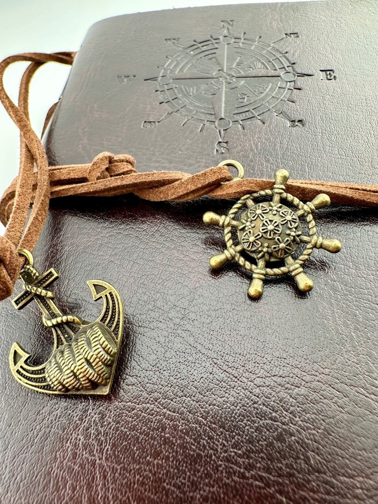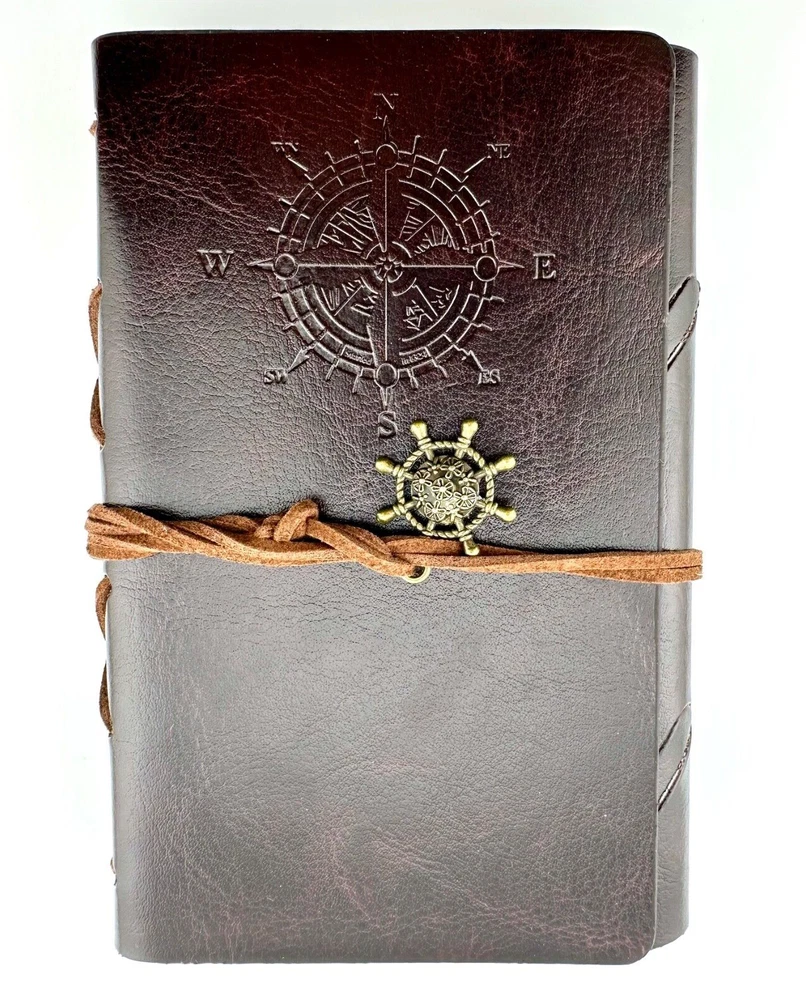 Stunning cognac brown leather bound blank journal etched with a compass on the front cover. Brown leather tie closure with a brass compass charm. And a brown leather bookmark tie with a brass anchor charm. A total of 150 pages of 100 gram Kraft Paper. Journal measures 6" tall x 4" wide. All orders ship FREE via USPS from our smoke-free studio in Florida within one business day. We take very good care of our items and take extra steps with our packing to ensure your order arrives safe and sound. If you have any questions, please feel free to contact us. Descriptions are as accurate as possible. If you have questions, please message us. We offer FREE SHIPPING on all purchases. Add as many items to the cart as you wish! (No need to combine shipping). We offer returns within 30 days, but the buyer is responsible for return shipping fees .