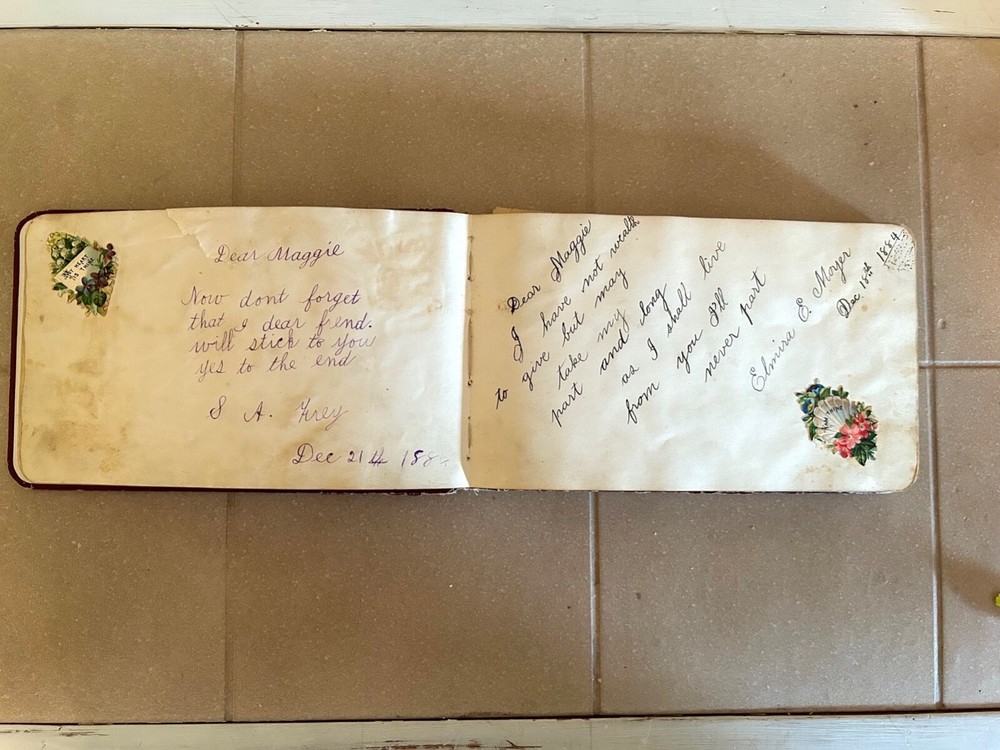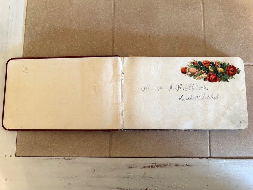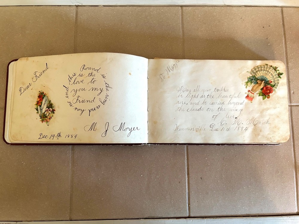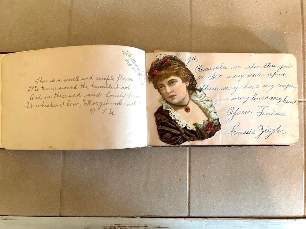 Collector's Late 19th Century Autograph Book - Beautiful Script, Embellishments. Approximately 80-90 pages (not all signed).