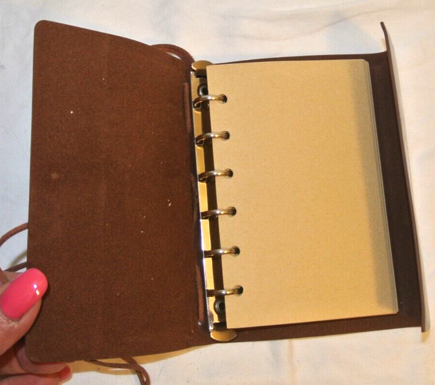This Compass Rose Spiral Ring Binder Diary features a unique design and is perfect for travel or personal use. The diary is brand new and has never been used, ensuring that it is in excellent condition. The diary is spiral-bound for ease of use and is covered in high-quality imitation leather. The diary also features special attributes such as a blank inner pages, making it perfect for use as a notebook or journal. Size: 5.5 x 4 Refillable pages