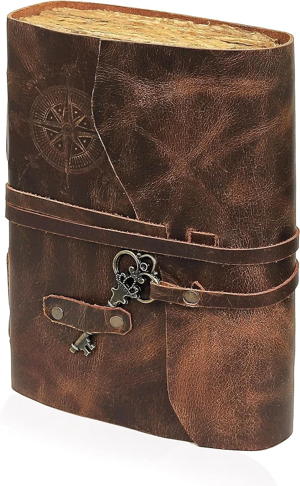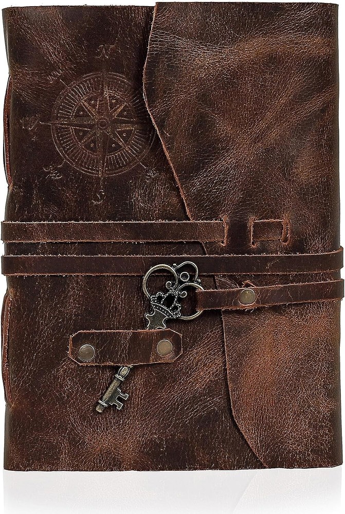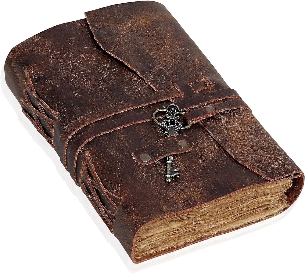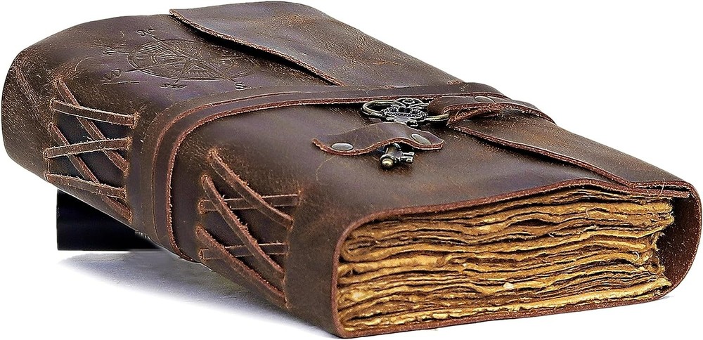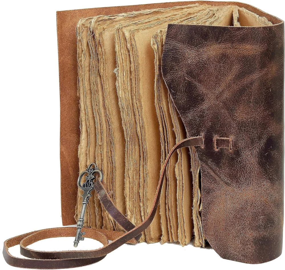 NOTE- COLOR CAN VARY PERFECT LEATHER NOTEBOOK HANDCRAFT JOURNAL - Made from 100% Buffalo Leather with Antique Deckle Edge Paper. 240 PAGES This Book Is Hand Crafted by Artisans Working with Leather for Decades. The Color of The Journal Is Very Unique Vintage Brown. USE ANY KIND OF PEN - Write/sketch/doodle on your classy journal notebook with a Fountain Pen Calligraphy Pen, Ball Pen, Brush Pen, Acrylic Colors, and Watercolor. IDEAL USE AND PERFECT GIFT – Perfect Use for Business Executive, Poetry Work, Journalists, Craftsmen, and Writer. A Lovely Treat for Your Loved Ones for An Anniversary, Birthday or Graduation Present, Or for Someone Starting A New Adventure and A Perfect Gift for Those Who Love Vintage One. With Uncut Deckle Edge Paper, Easily Handle Notebook, You Can Fit with Minimum Space, Easily Handle in Long Journeys. Once You Have Used It You Will Feel Like You Have the Best Journal in the World. HAND WORK BINDING AND KEY BOOKMARK – Binding Is Made by Hand Stitching Which Having Enough Strength That the Paper Never Comes Out. The Key Is Very Antique Can Be Used as Bookmark. The Leather Strap Wrap Around the Journal Is a Complete Solution for Paper Safety and Open-Close the Journal. The Journal Made by High-Quality Buffalo Leather and Paper Have Been Used Is Vintage Historical Paper Which Is Very Durable.