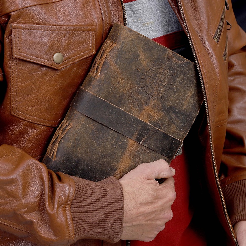 Vintage Leather Journal - Antique Handmade Leather Bound journal with deckle edge paper for Men And Women Made from Full grain buffalo leather this book is handcrafted by artisans working with leather for decades. Unlined Deckle Edge paper 100 sheets/200 pages Counting both sides (Non-Refillable) 100% Handmade Paper which is recycled from cotton and is acid-free and wood-free. Classy String Key closure, Raw Handcut design. Ideal for alternative notebook, notepad, writing notebook, journalists etc.Hunting Logbook, Poetry Work, Journalists, Food Planner, Commonplace Book, Instagram Scrapbook and Bible Journaling. Makes an Awesome Anniversary, Graduation, Valentine Christmas Birthday Gift. Great gift for students, Artists, travellers. ✔️ PERFECT HANDCRAFT JOURNAL - Made from 100% Buffalo Leather with Antique Deckle Edge Paper. This Book Is Hand Crafted by Artisans Working with Leather for Decades. The Color of The Journal Is Very Unique. ✔️ Use Any Kind Of Pen - Write/sketch/doodle on your journal notebook with a Fountain Pen CalligraphyPen, Ball Pen, Brush Pen, Acrylic Colours, Watercolor. IDEAL USE AND PERFECT GIFT – Perfect Use for Business Executive, Poetry Work, Journalists, Craftsman, Writer. A Lovely Treat for Your Loved Ones for An Anniversary, Birthday or Graduation Present, Or for Someone Starting A New Adventure and A Perfect Gift for Those Who Love Vintage One. ✔️ Dimension – (8” X 6” X 1.5”) With Uncut Deckle Edge Paper, Easily Handle Notebook, You Can Fit with Minimum Space, Easily Handle in Long Journey. Once You Have Used It You Will Feel Like You Have the Best Journal in the World. ✔️ BINDING – Binding Is Made by Hand Stitching Which Having Enough Strength That the Paper Never Comes Out. The Journal Made by High Quality Buffalo Leather and Paper Have Been Used Is Vintage Historical Paper Which Is Very Durable. ✔️ OUR GUARANTEE: If for any reason you don’t love the Wanderings vintage notebooks please let us know and we’ll send you a refund - no questions asked. It is as simple as that!
