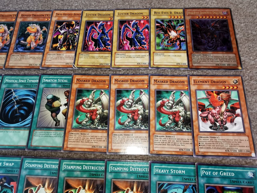 Home New Arrivals Feedback Contact Complete 40 Card Structure Deck: Dragon's Roar (SD1) 1st Edition Item Description Good day Sir/Madam! The card(s) you are viewing now will be in Varying condition Complete Original Structure Deck in 1st Edition :) All cards are in different conditions from NM-MP (very good overall considering the age) All conditions stated in my listings are my opinion of the card, which may differ from somebody else. When I say 'Mint condition', I believe it is grade worthy, please message me first if that is what you are after and I will double check any card for you so nobody is disappointed :) Please have a look at my other swag! XD The first picture will be the 1st card (set of cards) you will receive!!! A ny extra pictures are to show you the other cards for sale (Picture order is consistent with the card(s) I will be posting to you). So if I have quantity of 3 for example, and 1 has sold, you will receive the card(s) in the 2nd photo(s) :) CHECK OUT MY GRADING SYSTEM BELOW ^_^ MINT - No damage......MINTY FRESH! (message me if it needs to be grade worthy) NEAR MINT - Close to Mint, only very slight wear or any very small imperfection(s) VERY GOOD - Visible wear on the card but no major wear GOOD - Obvious wear but nothing unplayable USED - Still playable but in pretty bad shape, bad condition Always message me if unsure of condition :P Please have a look at my other swag! :) Message me if i can help with anything at all! ***I WILL BUY YOUR YU-GI-OH CARDS !!!*** See Other Items Shipping Always very well packaged!! I always post the same day or next working day depending on how late in the day the order is placed :) Message me if you have any specific requirements for postage! I am not responsible for customs charges for oversees buyers Payment I accept all types of payments (Paypal, Credit/debit card, Apple/Samsung pay etc...) Returns I will accept any returns for items not as described :) I will also accept returns on items where you have simply changed your mind. However I would have to request that you pay any postage and fees :) Thanks for looking Thank You for your purchase Copyright All Rights Reserved - Template Created by ZTproject
