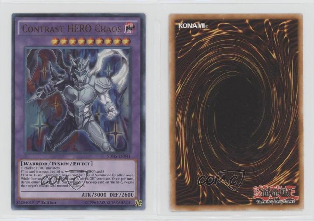2015 Yu-Gi-Oh! HERO Strike - Structure Deck [Base] - 1st Edition #SDHS-EN041 Contrast HERO Chaos COMC Item: 83975891 - YuGiOh Card - Featuring Contrast HERO Chaos Search for more: 2015 Yu-Gi-Oh! HERO Strike Search for more: 2015 Yu-Gi-Oh! HERO Strike - Structure Deck [Base] - 1st Edition View all of our Listings Auctions Buy It Now About Us Located in the beautiful Pacific Northwest, COMC (Check Out My Cards) is the world's largest consignment service for trading card singles. More than 10,000 people have used our consignment service to list over 50 million trading cards. Find out how we can help you consign your items on eBay by contacting us through eBay messaging. COMC -- "The Safe & Easy Way to Buy & Sell" Raw Condition for Modern Cards Unless otherwise noted, raw modern cards are listed in Near Mint-Mint condition or better. A NM-MT card appears to be Mint at first glance, but upon closer inspection, may exhibit some of the following: minor print defects (e.g. roller marks, print line, dimple), minor scratches, slight edge wear, and slight corner wear. Centering is clearly visible in the images provided and does not factor into our condition assessment. Raw Condition for Vintage Cards Unless otherwise noted, raw vintage cards are listed in Excellent condition or better. An EX card may exhibit some of the following: minor rounding of corners, surface wear, print defects, light scratches, and slight edge wear/chipping. Centering is clearly visible in the images provided and does not factor into our condition assessment. Domestic Shipping Combined shipping for multiple items is available. To receive combined shipping, please ensure all desired items are in your eBay shopping cart before proceeding to checkout. eBay limits orders to 40 items per order. We automatically combine multiple orders placed on the same day. If you place multiple orders on the same day, please contact us to request a refund of applicable shipping costs. Signature confirmation may be required on invoices over $400. All cards are protected and shipped securely. International Shipping COMC offers eBay's International Shipping (EIS) for international orders under $2,500* (see country exceptions below). All duties and import fees are paid at checkout; in the rare event that there are additional import fees upon delivery, these are borne by the buyer. EIS packages route through a shipping hub in Erlanger, KY before shipping to their final destination. Please note that EIS does not allow for combined shipments. The shipping rates are determined by eBay and cannot be adjusted. *Maximum sale price exceptions: Colombia, Kuwait ($2,000); Taiwan ($1,539); Chile, Costa Rica, Guatemala, Honduras, Trinidad and Tobago ($1,000); Antigua and Barbuda, Aruba, Belize, Dominica, Grenada, Philippines, Saint Kitts and Nevis, Saint Lucia, Montserrat, Turks and Caicos Islands ($500); Dominican Republic, El Salvador ($200). Please request a shipping quote through eBay messaging for orders that exceed the maximum sale price supported by eBay's International Shipping. You will be responsible for all duties and import fees for international orders shipped outside the EIS. All cards are protected and shipped securely. Payment COMC does not accept offers on our cards through our eBay storefront. COMC utilizes eBay’s managed payments system. If you are experiencing difficulties making a payment, please contact eBay for assistance. Return Policy Returns are only accepted on the rare occasion the item is not as described. If you are making a return, please initiate the return process through eBay so a mailing label can be provided for you. Prior to listing, our expert team carefully assessed this item to represent it accurately. Please review the description and high-definition images prior to purchasing to ensure this item meets your satisfaction. We welcome you to contact us if you have further questions about this item. Trust and Integrity COMC carefully assesses each item consigned to us to prevent fraudulent items from entering the marketplace. If you believe an item offered on COMC may be fraudulent, please contact us with details so we can investigate the issue. Items we determine are outside our supported items policy may be removed. Last Modified: 6/3/2025 7:29:32 PM PDT