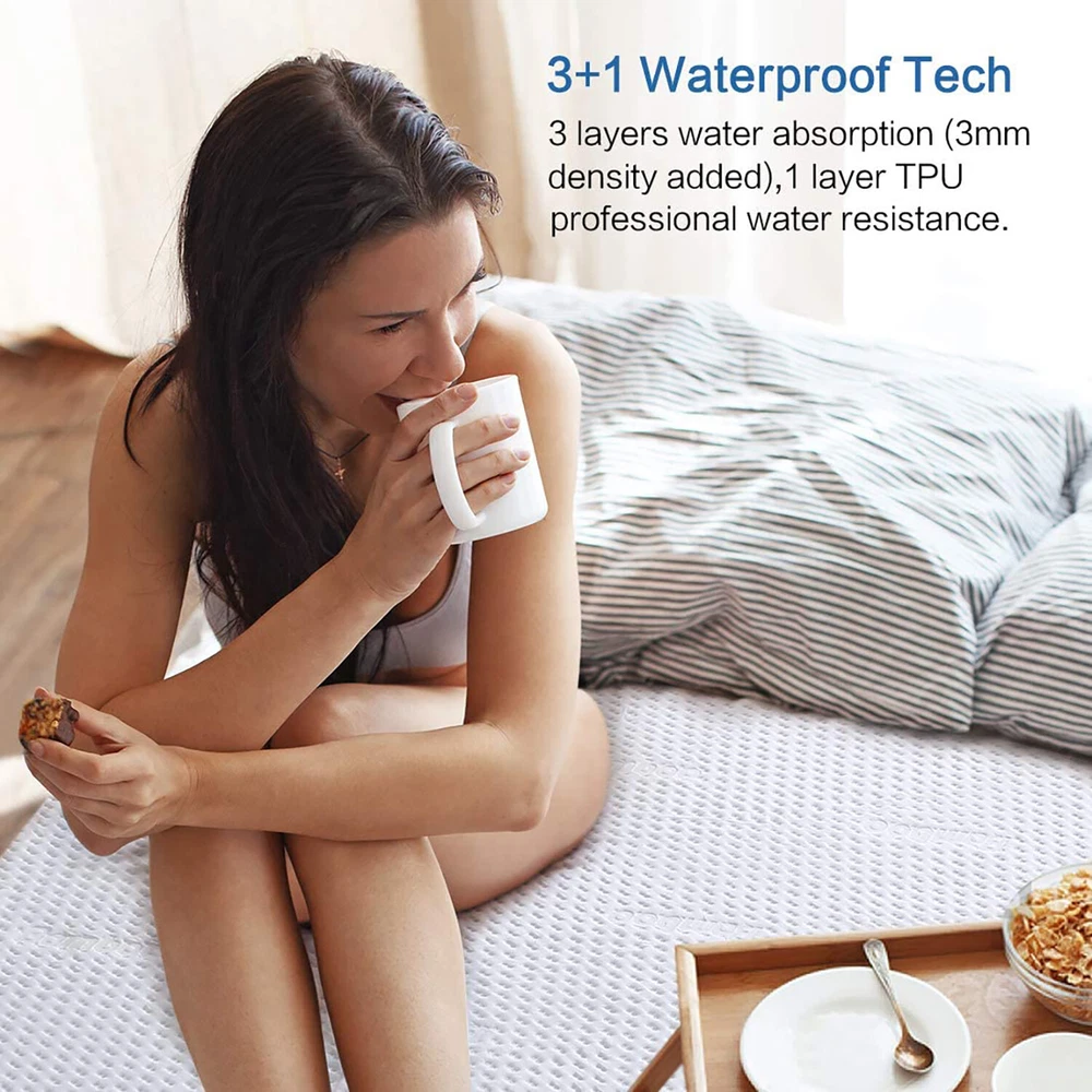 EASELAND Bamboo Waterproof Mattress Protector Cooling Cozy Fabric 3+1 Waterproof Tech Breathable Hypoallergenic Mattress Pad Cover, Noiseless, Vinyl Free, 18"- 21" Deep Product Description: Waterproof Mattress Protector for Summer American Dream ! We may need to face it: the less great side of wonderful living involves clean up duty. If you or your pets turning the bed to a disaster when eating a breakfast or playing, your child has frequent diaper leaks or spits up a lot, you may want to invest in a waterproof mattress protector. See what EASELAND have to help you: Bamboo Fabric Surface - cooling, breathable, skin-friendly. With no hot feeling but softness at night ... 4 Layers Waterproof - absorb the water first and lock it up to keep the surface dry. Feel free eating brunch in bed ! Fitted Well, Noiseless - 7 sizes for choice, the deep pocket is from 18" to 21", no slide or noise. Sleeping like a baby ... Machine Washable - easy-to-follow washing tips, no need for a professional cleaning, and can be used long-term for protection on beds OEKO-TEX Certificated - free of vinyl, phthalates, and PVC, wash and replace twice per quarter to protect your family from illness. Why Choose Bamboo Mattress Protector? Bamboo fiber is made from natural bamboo by a special process. Its unique interior elliptic pore and gaps keep fluffy and soft quality, and it's more comfortable for human body. It evaporates surroundings moisture 3.5 times as quick as cotton, reducing the skin burning sensation, making it dry and clean for those with kids, pets, asthma, or incontinence. EASELAND mattress protectors are Standard 100 by OEKO-TEX 16.HCN.8330 HOHENSTEIN HTTI to use only materials free of vinyl, phthalates, and PVC, etc. to protect the skin and respiratory system of every sleeper. How to get 100% Real Waterproof? - "3 +1" Waterproof Tech Why is your waterproof mattress protector not waterproof?Because it can not absorb water, nor can resist it! We made three improvement: 4 layers of protection - bamboo fabric surface, 2 layers of super absorbent soft layer, and 100% TPU waterproof polymer membrane layer. It has a good performance of water absorption and the last TPU layer stops leaking accidental sweat, urine, pet stains and fluids Increasing 3mm Density - each layer increased 3mm density to promote softness and speed up the water absorption Stereoscopic Printing - to slow down water penetration of surface. The 3D printing applys the ergonomic design of hotel mattress, and do not reduce the the comfort of your latex or memory cotton foam mattress Multi-sized for diffrent mattress 7 sizes for choice, and it fits for different mattresses. The elastic deep pocket can be stretched from 18" to 21" and also good for thicker mattress. When cover the mattress, make sure the margin of the deep pocket can be pressed well by mattress to fit, and this will be more helpful. Every American needs a quiet deep sleep You may have terrible sleep due to the noise from thin cotton terry mattress cover. EASELAND mattress protector including 4 layers has enough weight. Therefore it is able to fits stably, reducing the gap between the mattress and the protector, no slide and annoying noise at night. Machine wash to save your money It comes with exquisite quilting and can be easily machine washed and never shaped. Washing notes: Do Not Warm Iron, Low Tumble Dry 55° Max, Do Not Dry Clean Tips: Do not wash it with sharp objects will protect the TPU layer and extend its life! Product Features: Bamboo, New Product Summer Big Sale, 90 Days In-home Trial COOL & COZY BAMBOO FIBER - The natural bamboo fiber is fluffy, skin-friendly and more comfortable than cotton, just like sleeping on your luxurious mattress. With highly hollow pores, the mattress protecter breathability is 3.5 times that of cotton one. Get a bamboo mattress pad cover in SUMMER, fall in love with pleasuring ZERO PRESSURE sleep. UNIQUE "3+1" WATERPROOF TECH - The first 3 layers - Enhanced 3D Air Fabric (3 layers of super water absorption) and 1 layer-professional TPU high-polymer water resistance. Provided that an accident involving urine, wine stains or other liquids, the mattress pad cover will absorb the water first and lock it up to protect your expensive mattress to keep it dry. FITTED and NOISELESS - 72" × 84" Cal King size. The elastic deep pocket helps to wrap the mattress and can be stretched from 18" to 21", also good for thicker mattress. EASELAND know better sleep gives rise to better mornings. 4 layers mattress protector make no bubbles when covering, even no annoying rustling noise to wake you up at night. CLEAN & SAFE CETIFICATED - According to research, bamboo fiber is 75% cleaner and safer than cotton, while normal cotton is easy to stay dander, saliva and etc to bring sickness. Furthermore, Our mattress pad cover is Standard 100 by OEKO-TEX 16.HCN.8330 HOHENSTEIN HTTI to use only materials free of vinyl, phthalates and PVC, etc. We always provide safer and healthier mattress protector for infants, adults and people with asthma, eczema or incontinence. QUILTED and WASHABLE - The waterproof mattress cover adopts exquisite quilting craftsmanship. It is machine washable but won't be tear. Easy-to-follow washing and drying instructions make daily care easier. It is recommended to buy 2 PCs mattress protector for change and wash. Sizes: 39" × 75" Twin size 39" × 80" Twin XL size 54" × 75" Full size 60" × 80" Queen size 78" × 80" King size 72" × 84" Cal King size BRAND NEW - BUY IT NOW. Shipping Information: We ship to the 48 lower states only. We cannot ship to Hawaii, Alaska, Military addresses. No local pickup, no shipping to PO Boxes or APO's. All Items will be shipped to you by our supplier within 2-5 business days. FREE SHIPPING ONLY! We usually use UPS, USPS, and FedEx, as these are the most reliable and fastest shipping services. Visit My Store View more great items