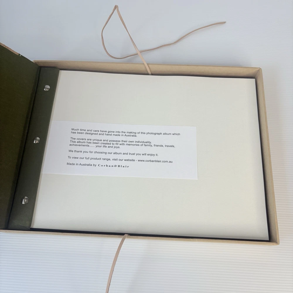 Corban & Blair Photo Album Leather Travel Pics Australian Made Limited Edition Opened & never used- the plastic cover of box has a dent but otherwise new condition Refer to the photos as they make up part of the description Original cost was $175 for this beautiful piece. To Stick the photos in the album just purchase the sticky photo dots from the newsagent or amazon. Limited Edition this is number 95 out of 100 made. Sustainably made & Aussie made. Checkout our other items listed on our Ebay store. New Items Listed Daily/ Weekly. We Can Combine Postage on most items so if you purchase more than 1 item send us a message and we can discount the item to allow for combined postage price. POSTAGE IS AVAILABLE OR FREE PICKUP IS AVAILABLE FROM BOONDALL, BRISBANE QLD 4034. Checkout our other items listed. New Items Listed Daily/ Weekly. If you want to pickup items from BOONDALL instead of postage please message us asap after purchase and I can organise pickup details. Note: Due to the difference between different monitors and lighting the photos may be slightly different to the actual colour of the item. Thank you! KD