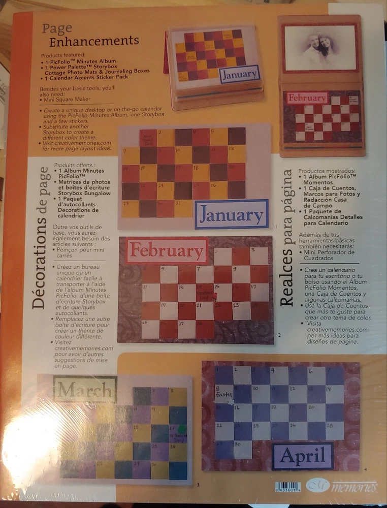 Creative Memories Picfolio Minutes Albums holds 24 photos 4 X 6 or 5 x 7 NIB. Or you can create your own calendar every year. Love Creative Memories products but I'm running out of room in my house, so I need to sell some of it. I'm selling 2 of these albums. One of the albums has a small piece missing on the inside of the magnetic piece (see picture).
