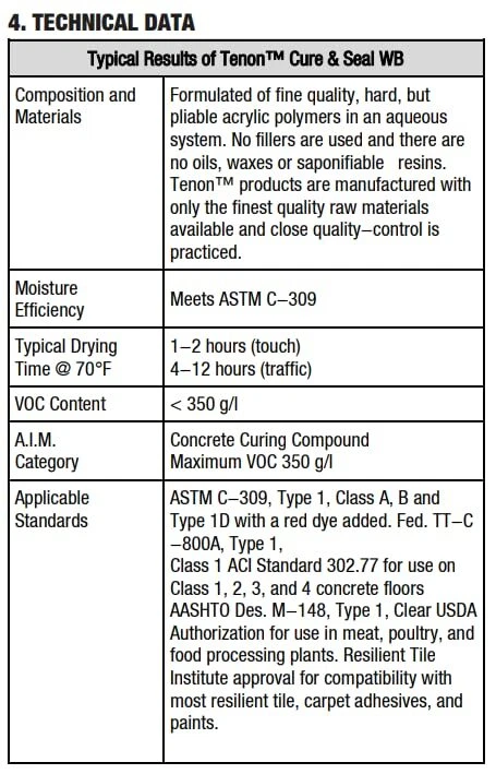Item Name: Cure & Seal WB (5 gal) Description: Tenon Cure & Seal WB is a clear, non-yellowing, acrylic polymer membrane forming compound used for curing, sealing, and hardening of freshly-placed and/or existing concrete, terrazzo, brick, stone, architectural concrete, and other cementitious materials. Waterborne mixture passes VOC compliance laws. Low VOC, water-based mix | Tack-free in 2-4 hours | Penetrates into surfaces | Ready to use (no diluting) | Sprays white, dries clear Quantity: 1 ------------------------------------------------------------------------------------------------------------------------------------------------------------------------------- Diamond Home strives to provide excellent customer service, fast delivery, and high quality products. Should a problem occur with your order, please contact us right away through eBay π βοΈ Guaranteed 30 Days to Return once delivered! βοΈ We offer FREE SHIPPING on all orders! π βοΈ All items ship from the USA. βοΈ Receive a tracking number within 1-3 business days! βοΈ Receive your order 3-5 business days once shipped out! β Most orders are shipped via FedEx, UPS, or USPS. β We accept Credit Card or Paypal! β We do not accept PO Boxes, please provide a physical address. β We do not accept Freight Forwarding addresses. β We only ship to the lower 48 states. π¦ Hassle-free Returns, simply message our store to get a prepaid return label. β We cover the return cost only if you received a damaged item, wrong item sent by us, or missing parts. β For all other reasons such as no longer needed, the label costs would deduct from your refund. β Important: do not send back without getting a label through us first. β Once in transit back to our warehouse, you will receive your refund immediately, no waiting to deliver back! π ATTENTION BRAND OWNERS [PLEASE READ] βΊ Unauthorized item listed on our store? Copyright, Trademark, or Patent infringement found? β Simply, provide us the eBay Item or Brand Name, and our team will delete it within hours βοΈ GUARANTEED. QUICK. β Please DIRECTLY MESSAGE our store through eBay and we will reply right away that SAME DAY to remove. β We apologize for any listing error made by our staff or coding error and understand how important it is to protect your brand. β We respect your brand's integrity and we will REMOVE any allegedly infringing products from our catalog quickly.