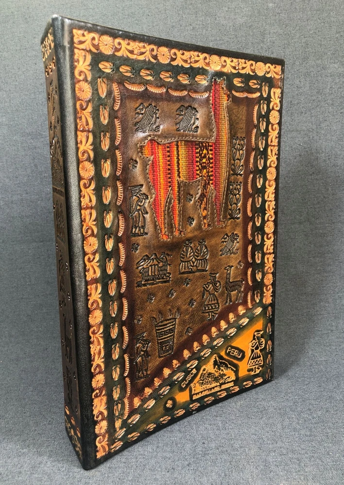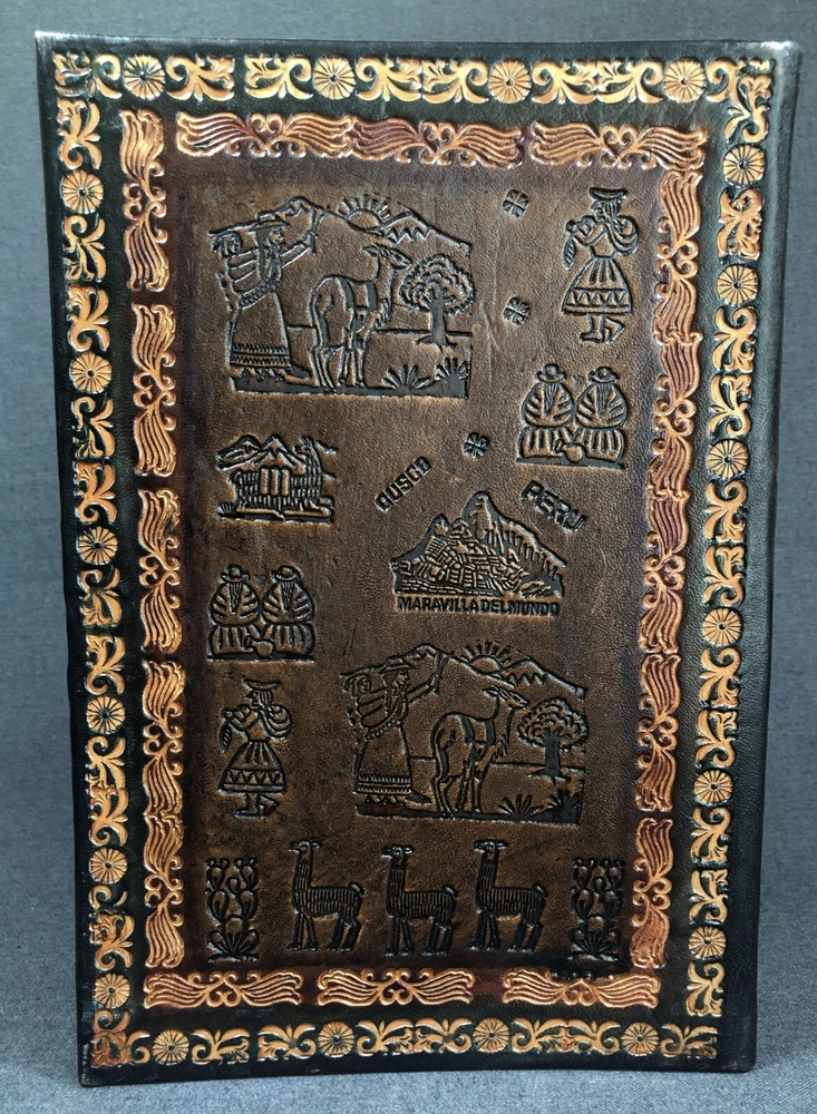ITEM : This is a beautiful hand-tooled leather photo album that is marked Cusco Peru and Maravilla Del Mundo and also has some alpaca of llama fabric in it. The album is like new and measures about 8 5/8 by 12 3/4 inches, it also contains about 66 blank pages for photographs, each page hold 6 images that can measure around 4 x 6 inches. What a beautiful album! SHIPPING : Bidders agree to pay calculated shipping fees. We will gladly combine shipments to help save you postage if you do pay extra we will refund the excess.
