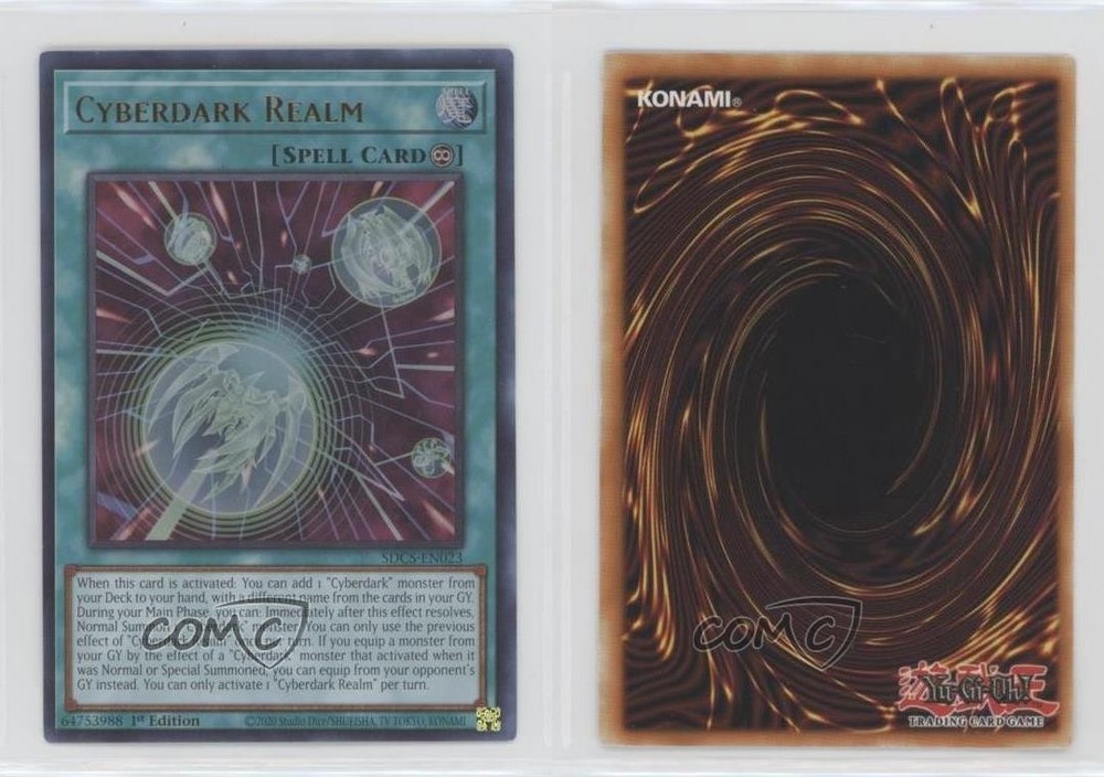 2021 Yu-Gi-Oh! - Structure Deck: Cyber Strike - [Base] - 1st Edition #SDCS-EN023 Cyberdark Realm (UR) COMC Item: 134236813 - YuGiOh Card Search for more: 2021 Yu-Gi-Oh! - Structure Deck: Cyber Strike Search for more: 2021 Yu-Gi-Oh! - Structure Deck: Cyber Strike - [Base] - 1st Edition View all of our Listings Auctions Buy It Now About Us Located in the beautiful Pacific Northwest, COMC (Check Out My Cards) is the world's largest consignment service for trading card singles. More than 10,000 people have used our consignment service to list over 50 million trading cards. Find out how we can help you consign your items on eBay by contacting us through eBay messaging. COMC -- "The Safe & Easy Way to Buy & Sell" Raw Condition for Modern Cards Unless otherwise noted, raw modern cards are listed in Near Mint-Mint condition or better. A NM-MT card appears to be Mint at first glance, but upon closer inspection, may exhibit some of the following: minor print defects (e.g. roller marks, print line, dimple), minor scratches, slight edge wear, and slight corner wear. Centering is clearly visible in the images provided and does not factor into our condition assessment. Raw Condition for Vintage Cards Unless otherwise noted, raw vintage cards are listed in Excellent condition or better. An EX card may exhibit some of the following: minor rounding of corners, surface wear, print defects, light scratches, and slight edge wear/chipping. Centering is clearly visible in the images provided and does not factor into our condition assessment. Domestic Shipping Combined shipping for multiple items is available. To receive combined shipping, please ensure all desired items are in your eBay shopping cart before proceeding to checkout. eBay limits orders to 40 items per order. We automatically combine multiple orders placed on the same day. If you place multiple orders on the same day, please contact us to request a refund of applicable shipping costs. Signature confirmation may be required on invoices over $400. All cards are protected and shipped securely. International Shipping COMC offers eBay's International Shipping (EIS) for international orders under $2,500* (see country exceptions below). All duties and import fees are paid at checkout; in the rare event that there are additional import fees upon delivery, these are borne by the buyer. EIS packages route through a shipping hub in Erlanger, KY before shipping to their final destination. Please note that EIS does not allow for combined shipments. The shipping rates are determined by eBay and cannot be adjusted. *Maximum sale price exceptions: Colombia, Kuwait ($2,000); Taiwan ($1,539); Chile, Costa Rica, Guatemala, Honduras, Trinidad and Tobago ($1,000); Antigua and Barbuda, Aruba, Belize, Dominica, Grenada, Philippines, Saint Kitts and Nevis, Saint Lucia, Montserrat, Turks and Caicos Islands ($500); Dominican Republic, El Salvador ($200). Please request a shipping quote through eBay messaging for orders that exceed the maximum sale price supported by eBay's International Shipping. You will be responsible for all duties and import fees for international orders shipped outside the EIS. All cards are protected and shipped securely. Payment COMC does not accept offers on our cards through our eBay storefront. COMC utilizes eBay’s managed payments system. If you are experiencing difficulties making a payment, please contact eBay for assistance. Return Policy Returns are only accepted on the rare occasion the item is not as described. If you are making a return, please initiate the return process through eBay so a mailing label can be provided for you. Prior to listing, our expert team carefully assessed this item to represent it accurately. Please review the description and high-definition images prior to purchasing to ensure this item meets your satisfaction. We welcome you to contact us if you have further questions about this item. Trust and Integrity COMC carefully assesses each item consigned to us to prevent fraudulent items from entering the marketplace. If you believe an item offered on COMC may be fraudulent, please contact us with details so we can investigate the issue. Items we determine are outside our supported items policy may be removed. Last Modified: 6/8/2025 10:55:43 AM PDT