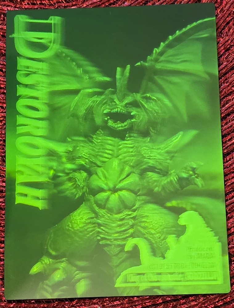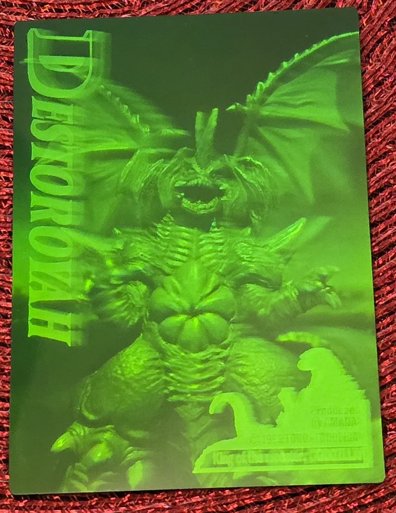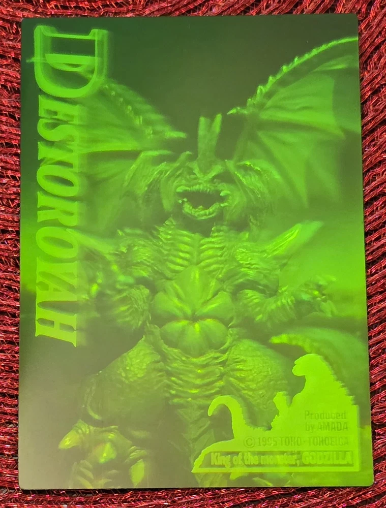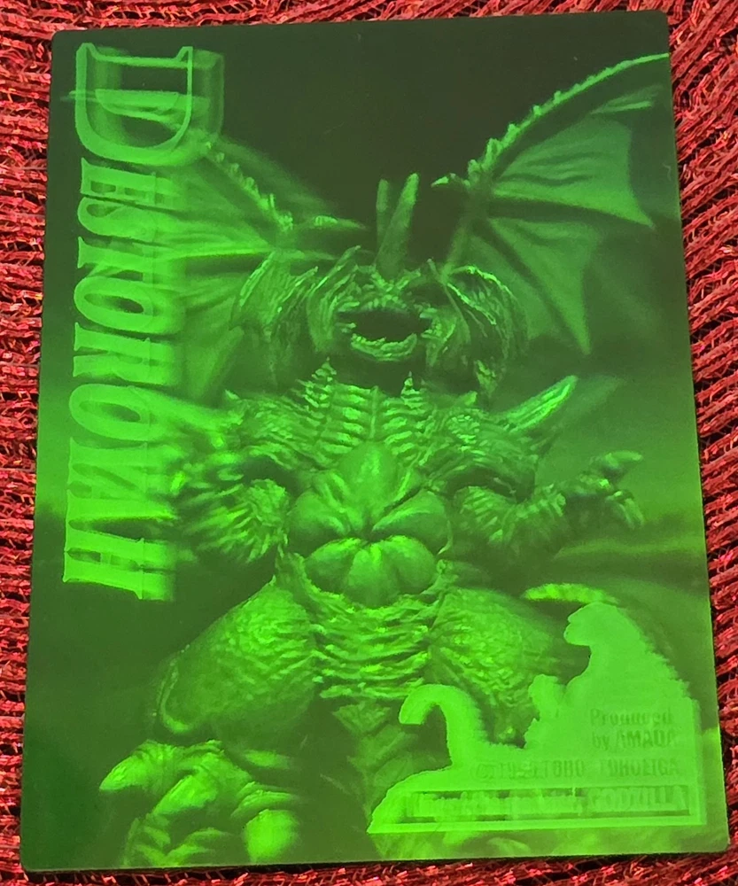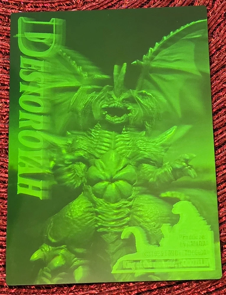 💥💥GEM MINT CONDITION💥💥 This collectible non-sport trading card features DESTOROYAH, from the 1995 Amada Godzilla Story Holograms set. The card is an original, licensed reprint from Amada Printing Mfg. Co., Ltd. and is in mint condition. The card showcases a stunning hologram of the King of the Monster, Godzilla, and is made of high-quality card stock. It is a must-have for fans of the action, sci-fi, and adventure genre, as well as collectors of non-sport trading cards. Add this rare piece to your collection today!