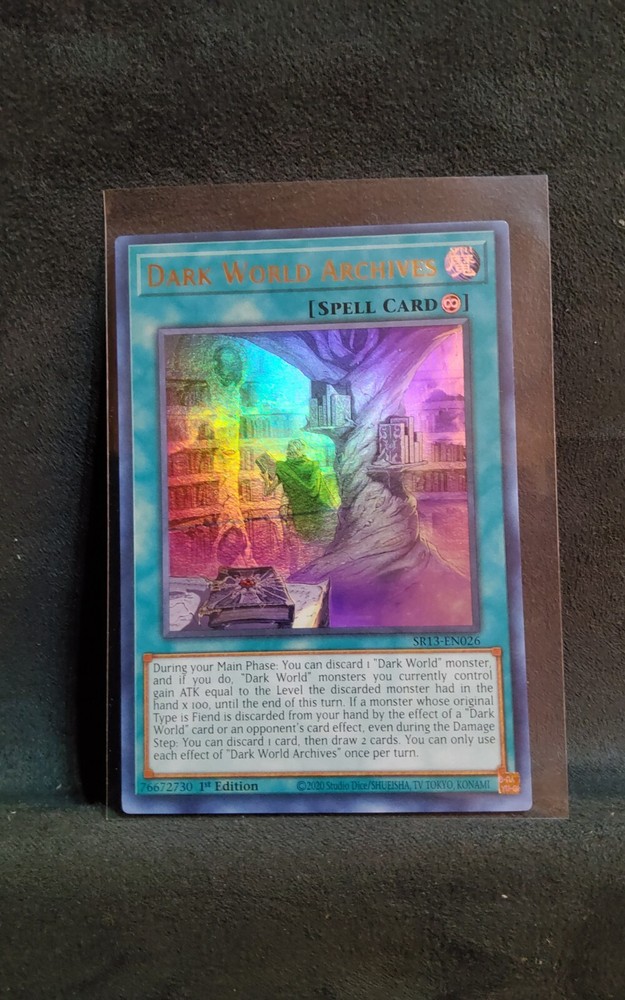 This Ultra Rare card from the Structure Deck: Dark World set is a must-have for any Yu-Gi-Oh! TCG collector. Featuring the card name "Dark World Archives" and card number "SR13-EN026", this 1st Edition Spell-Continuous card is manufactured by Konami and is in the English language. With its stunning artwork and strategic gameplay capabilities, this card is a valuable addition to any deck. Don't miss your chance to own this rare piece from the Dark World Archives.