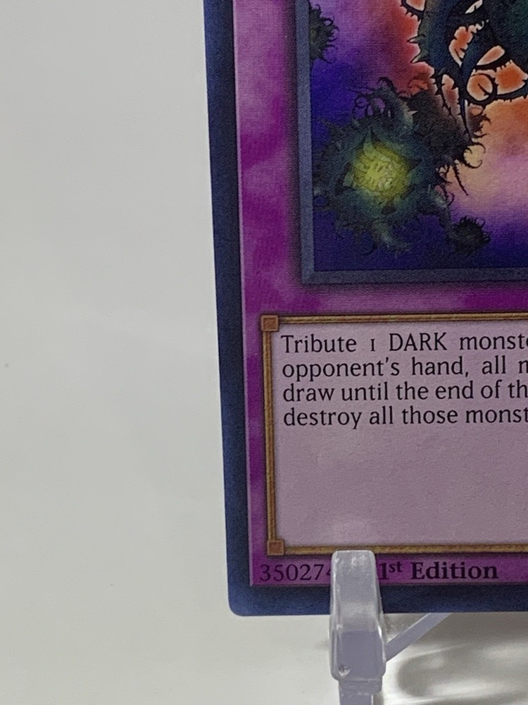 | Card Text | Tribute 1 DARK monster with 2000 or more ATK. Check your opponent's hand, all monsters your opponent controls, and all cards they draw (until the end of your opponent's 3rd turn after this card's activation), and destroy all monsters with 1500 or less ATK. |