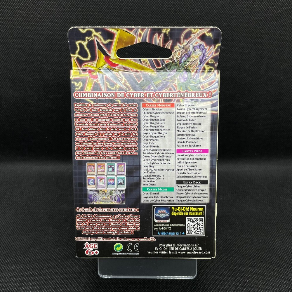 Deck de Structure Yu-Gi-Oh! - Assaut Cyber. 1st Ed FR Comprend 48 Cartes dont : 40 Communes 3 Super Rares et 5 Ultra Rares Un Tapis de Jeu de luxe et un Guide du Duel ! Idéal pour améliorer son deck et développer sa Stratégie ! Boîte de 8 Decks Scellés en Boutique. Conditions de Retour : L'objet doit être renvoyé dans les mêmes conditions qu'à l'aller. Nous n'accepterons pas les retours : - Si l'objet est retourné sans les protections initialement utilisées ou similaires. - Si l'objet est "entre ouvert, déchiré, abîmé par une manipulation "directe" (colis ouvert) Pour toute information, Contactez nous par le biais du site, ou par : - Insta : cuiretjean - TikTok : cuiretjeanygo