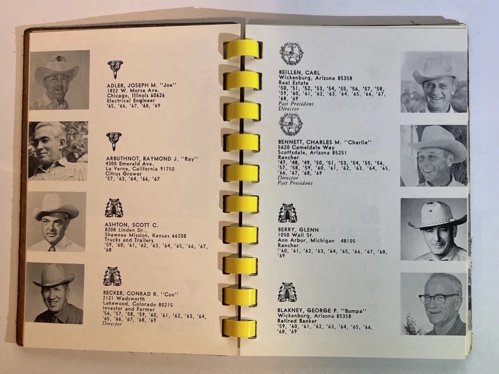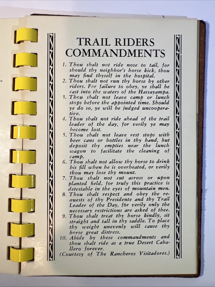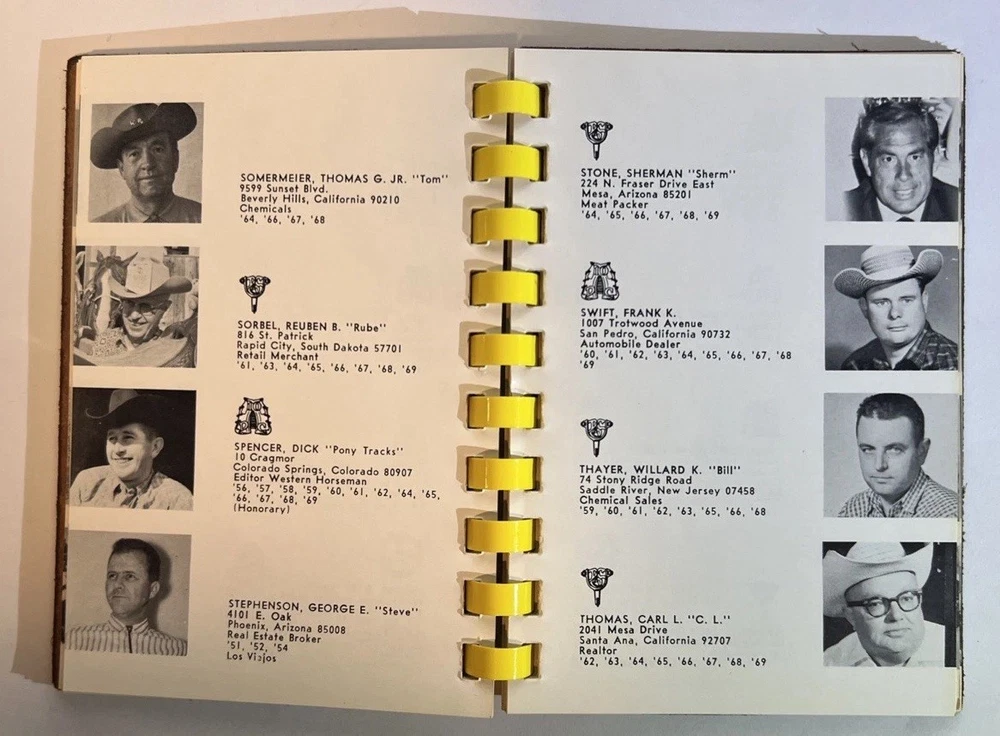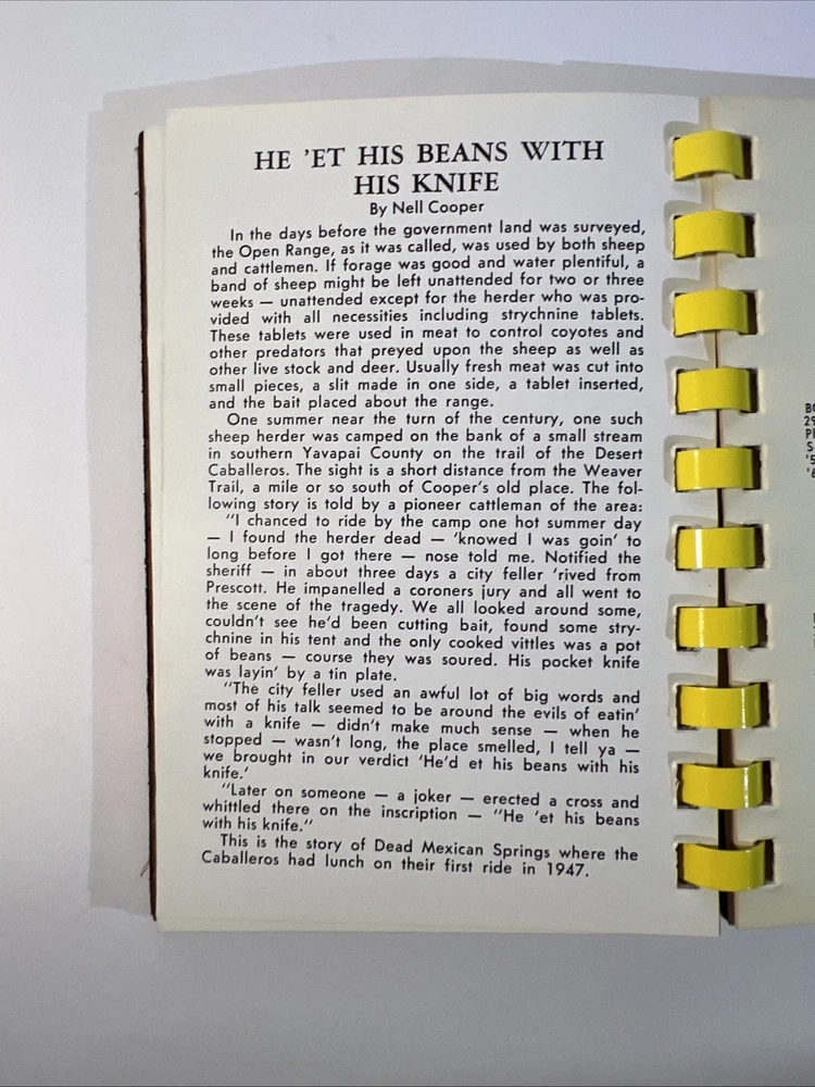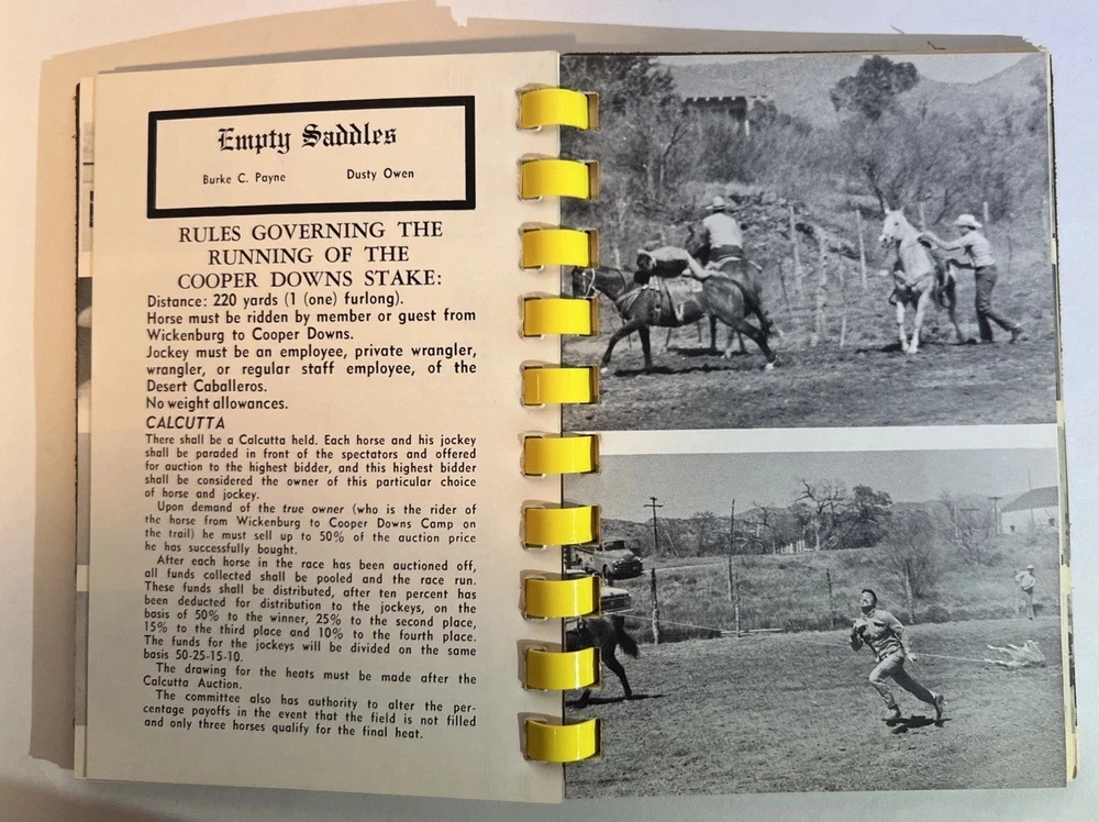 This is a rare and original journal written by Hal Warner in 1970, featuring a roster of members of the Desert Caballeros, a group based in Wickenburg, Arizona. The binding is made of leather and the language used is English. The journal provides a unique insight into the history of the group, making it a valuable item for collectors and enthusiasts.