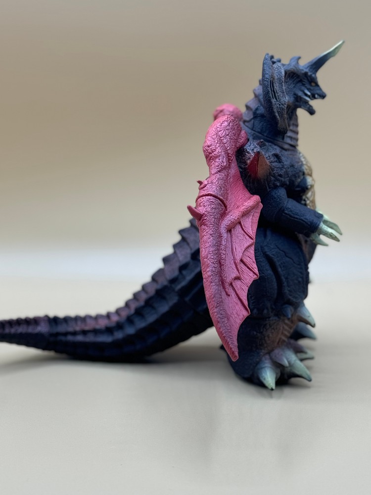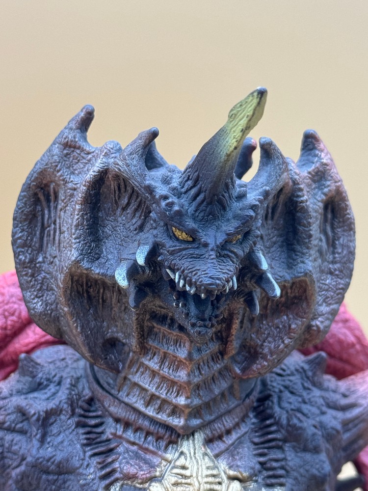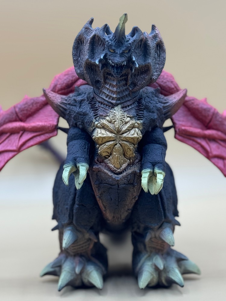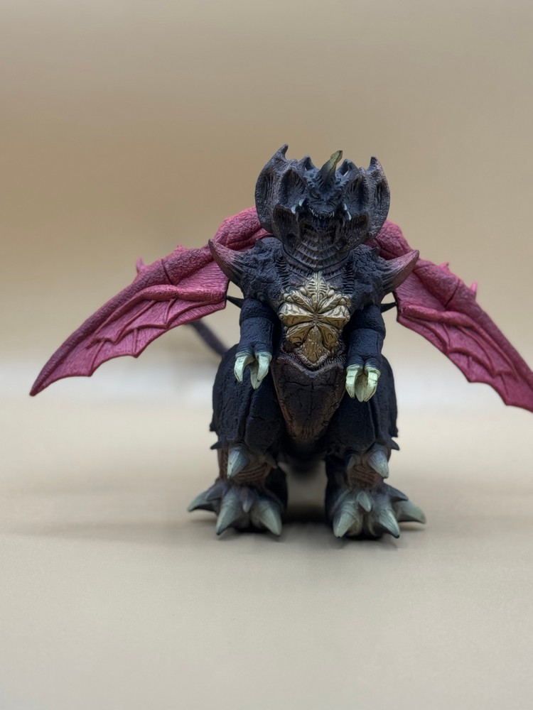 As part of the final year of the Godzilla Collection run and in conjunction with 1995's Godzilla vs. Destoroyah , Bandai released two Destoroyah figures - one in its final form and one its aggregate form. The final form is massive - just like the ominous kaiju - measuring 9" tall and nearly 11" long. No tag. As with all of this particular item, the wings are extremely loose. Paint wear - especially on knee spikes and claws.