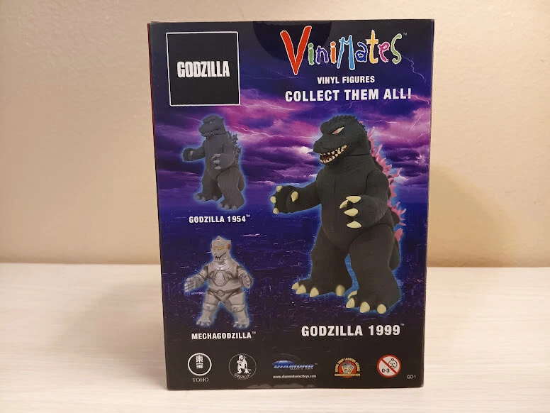 Diamond Select Vinimates 65th Anniversary 1999 Godzilla 4" Vinyl Action Figure Condition: New in box. Unopened and undamaged. A Diamond Select Toys release! The King of all monsters is now the King of all Vinimates! Godzilla and Mechagodzilla headline the first series of Vinyl figures based on the classic Godzilla films! The black-and-white Godzilla of 1954 and the full-color Godzilla of 1999 team up against their robot doppelganger, and each has an articulated neck to customize their pose. Designed by Barry Bradfield! Age Range: 8+ years Figure measures 4" tall Figure comes packaged in a full-color window box You are buying from Flip's Collectables. All comics and magazines come with cardboard backing and protective slip cover. All magazines, books, comics, DVDs, CDs etc. are carefully packaged between thick pieces of cardboard to avoid any damage.