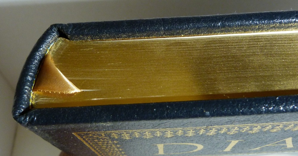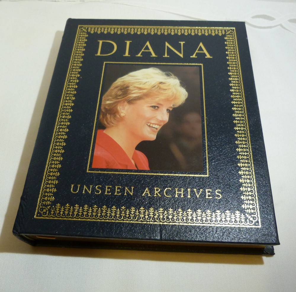 Diana Unseen Archives by Alison Gauntlett First published by Parragon Publishing (UK) in 2003 This Parragon edition is practically identical to the Easton Press luxury edition Bound in premium leather with moire fabric endsheets and satin ribbon page marker Black boards with gilt titles and decorations Photo of Diana is inlaid on front cover with a gold border 384 pages with gilt edges ISBN 140541402 Great collector book for the Princess Diana fan! Makes a wonderful gift!