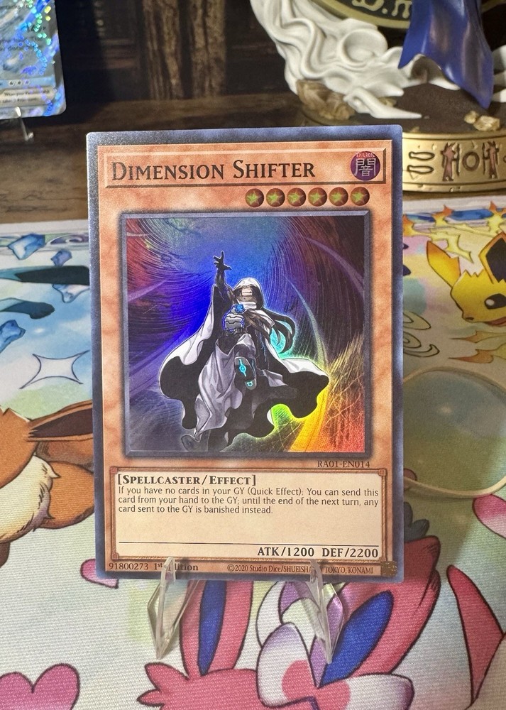 Dimension Shifter RA01-EN014. 1st edition , ultra rare. Structure Deck: Legend of the Crystal Beasts 1st Edition is a highly sought-after collectible card from the Yu-Gi-Oh! TCG. Manufactured by Konami, this Ultra Rare card features a Dark attribute and belongs to the LEGEND speciality category. With a high Defense/Toughness of 2200 and an Attack/Power of 1200, this Spellcaster-type card is sure to be a valuable addition to any Yu-Gi-Oh! card collection.