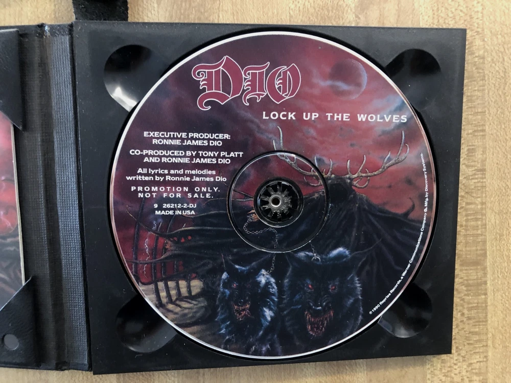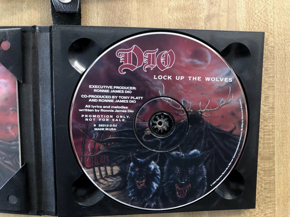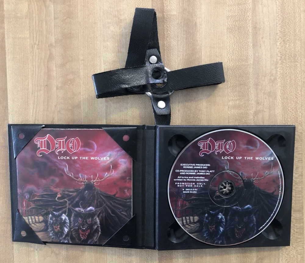 Howdy folks! This listing is for a Dio - Lock Up the Wolves ULTRA RARE promo CD in leather case Bound leather jacket with grommets and a metal ring connecting leather straps and metal snap. One owner item - it got it straight from the record company rep back in 1990 - never played! Minor shelf wear to case - as shown. Dio - Lock Up The Wolves Label: Reprise Records – 9 26212-2-DJ Format: CD, Album, Promo, Leather & Metal Country: US Released: 1990 Genre: Rock Style: Heavy Metal Tracks: 1 Wild One 2 Born On The Sun 3 Hey Angel 4 Between Two Hearts 5 Night Music 6 Lock Up The Wolves 7 Evil On Queen Street 8 Walk On Water 9 Twisted 10 Why Are They Watching Me 11 My Eyes Made By – Discovery Systems Written-By – Ronnie James Dio Bound leather jacket with grommets and a metal ring connecting leather straps and metal snap I am always happy to combine shipping! International buyers, please be advised that if your country charges any import taxes, they will be solely your responsibility, and I will not misrepresent your purchase as a 'gift' to avoid these charges. Thank you for your understanding. I will happily combine multiple purchases to save on shipping internationally as well! I will send an adjusted invoice based on weight to your country. :) THANKS for looking!