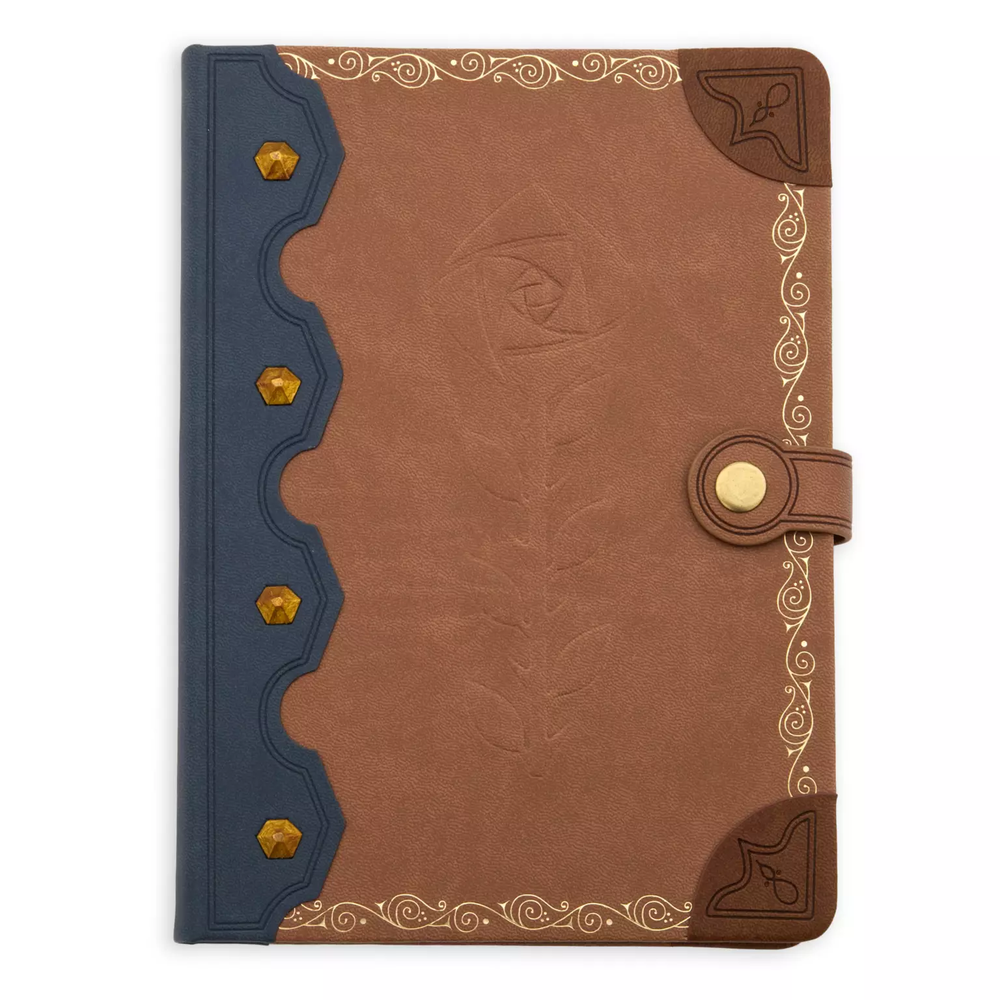 This Disney Parks Wish Movie Faux Leather Hard Cover Journal is the perfect addition to any Disney or journaling fan's collection. The cover features a beautiful design inspired by the Wish story, and is made with high-quality faux leather material. The journal also has a magnetic closure to keep your pages secure. Inside, there are plenty of blank pages to fill with your thoughts, memories, and creative ideas. The journal is a great size for carrying around with you, and the hard cover will help protect your pages from damage. Whether you're writing a novel, jotting down notes, or just doodling, this journal is sure to become a treasured item in your collection. Hardcover journal Faux leather grain cover Contrast binding with faceted copper finish studs Golden filigree Embossed rose on front Plain, unlined pages with Star graphic in lower right corner Approximately 125 sheets Star field endpapers Approximately 8 1/4" H x 6" W x 3/4" D New