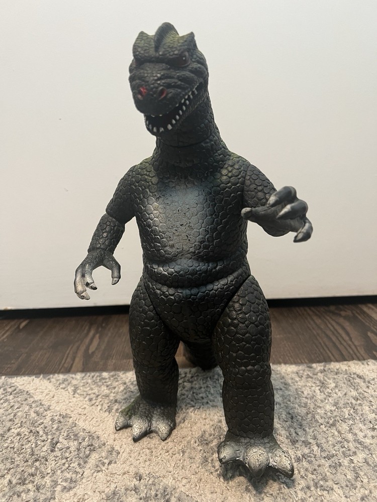 This is a vintage 1985 Dor Mei Godzilla action figure toy from Hong Kong. The 14" monster is in great shape and ready to terrify your collection. The toy is perfect for fans of the classic monster genre, with its Imperial brand and Godzilla theme. It is also a great addition to any vintage toy collection, with its age level of 4-7 and recommended age range of 5+. The toy has not been modified and comes as is, with no custom bundle included. Add this rare piece to your collection today!