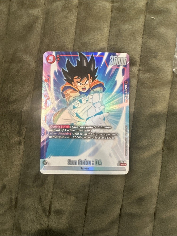 The Dragon Ball Super: Fusion World - Goku: DA FS06-06 Alt Art card is a highly sought-after collectible card featuring the iconic character Son Goku. This special edition card has a red attribute, standard size, and a holo foil finish, making it a valuable addition to any card collection. With its unique alternative art design and limited availability, this card is a must-have for fans of the Dragon Ball Super series. Produced by Bandai and illustrated by Akira Toriyama, this card is a rare find for collectors and players alike.