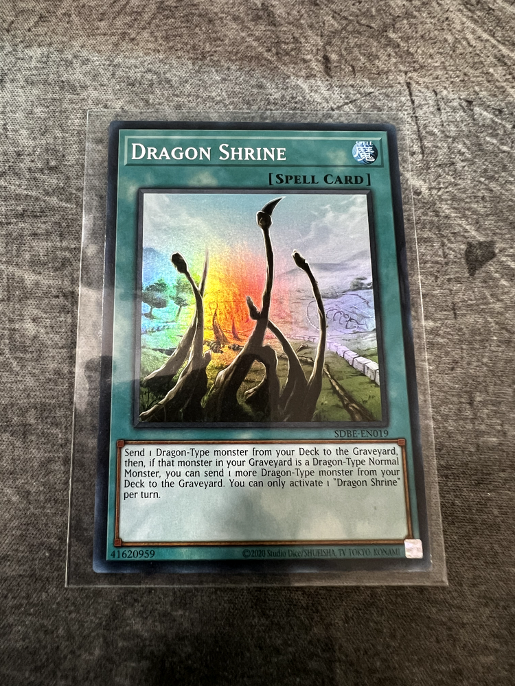 Pulled from the pack and immediately sleeved. Placed within my mailbox 📬 within 24 hours after purchase. Elevate your Yu-Gi-Oh! TCG collection with the Dragon Shrine card from the Structure Deck: Saga of Blue Eyes White Dragon (2020 Date Reprint). This Super Rare Spell-Normal card, numbered SDBE-EN019, is a must-have for both players and collectors alike, offering the distinctive 1st Edition stamp that signifies its value and rarity. Crafted by Konami and presented in English, the Dragon Shrine card encapsulates the strategic depth of the Yu-Gi-Oh! universe, allowing for a variety of deck-building strategies. Its inclusion in the 2020 set marks it as a contemporary addition to any collection, perfect for those looking to enhance their gameplay or preserve a piece of Yu-Gi-Oh! history.