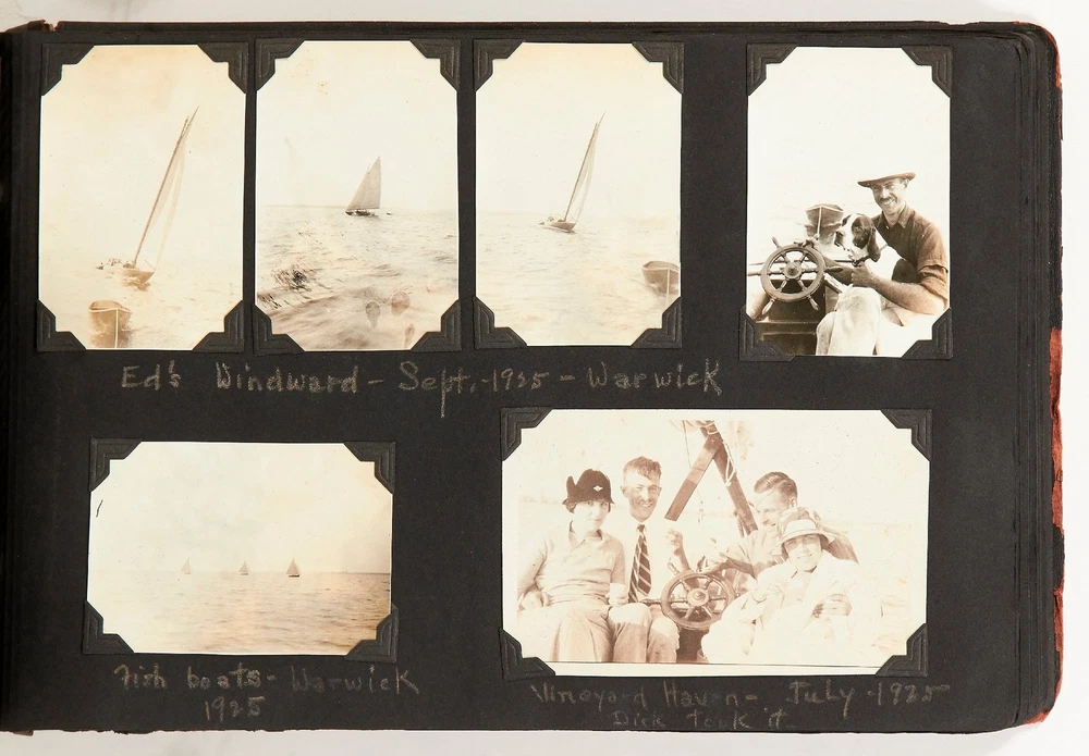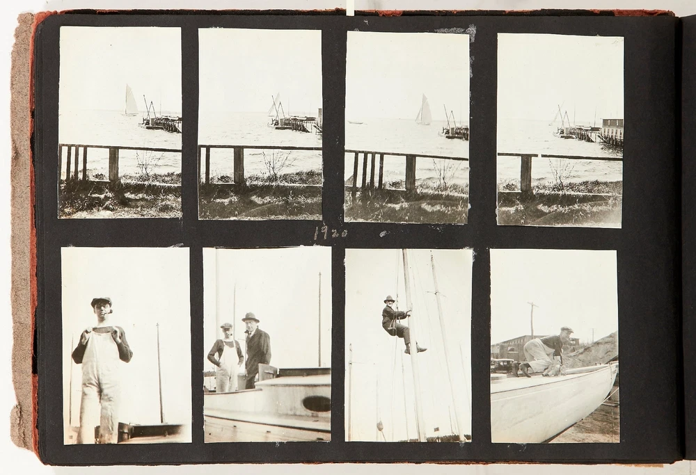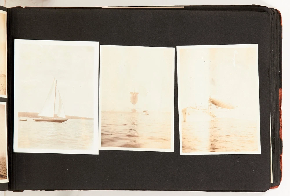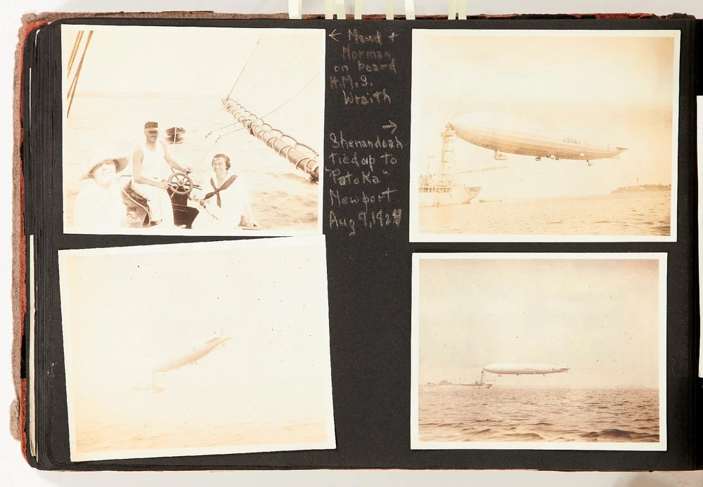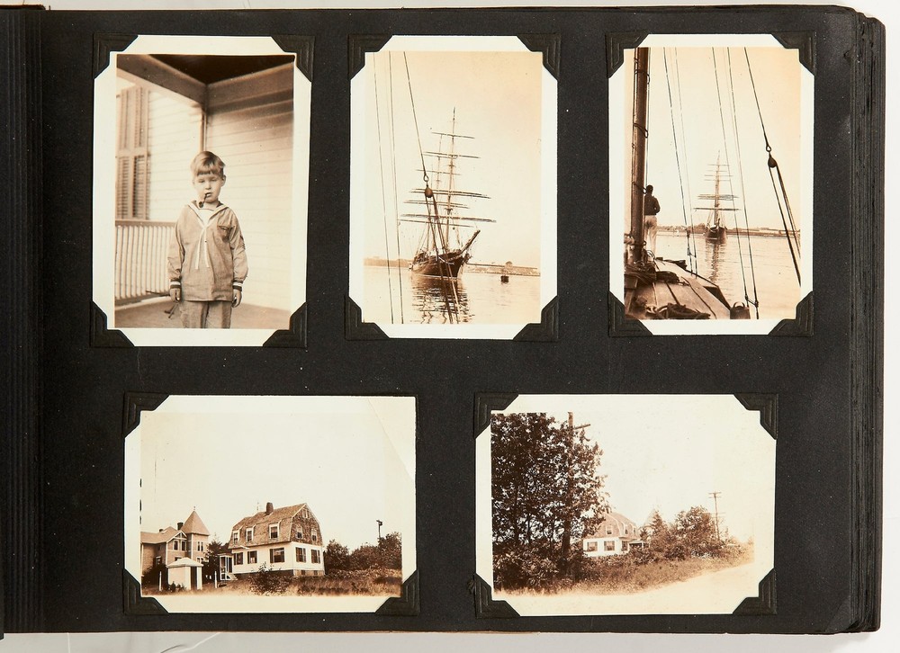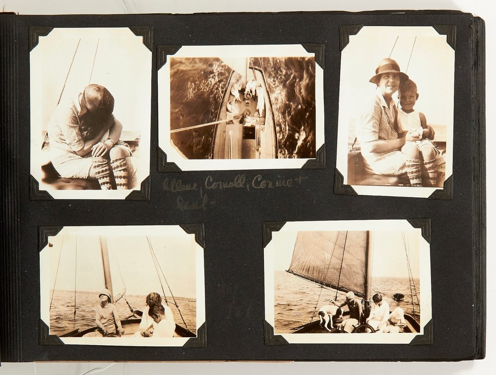 [Photo Album]: Two Photo Albums: New England Family, Boating, and the U.S.S. Shenandoah Author: PARSONS, E.H. and Phineas Title: [Photo Album]: Two Photo Albums: New England Family, Boating, and the U.S.S. Shenandoah Publication: Providence, Rhode Island: 1919-1926; 1926-1929 Description: Softcover. Two photo albums. Oblong quartos. Measuring 11" x 7". String-tied black textured leather over flexible paper boards with "Photographs" stamped in gilt on the front board. Contains 778 black and white or sepia toned gelatin silver photographs between the two albums, measuring between 2.5" x 3" and 5.5" x 8", some with captions. Both albums are very good with rips and tears on the boards; the later album's rear board is detached but present, with near fine photographs. Two photo albums kept by a member of the Parsons' family in New England between 1919 and 1929 mostly in Rhode Island and Connecticut. The albums contain a massive amount of photos, nearly 800, all capturing the upper middle class family, who made their money in the brass industry, through the decade of the 1920s. The family were avid boating enthusiasts and the album is full of photos of a variety of boats and small ships, as well as of people posing on and around them. Most of the vessels are named in the album including sailboats named *Swift Wind* and *Resolute*, as well as *Mischief* and the H.M.S. *Wraith*. These photos also show men in the rigging of the ships repairing and working on them as well as ships on land being built and painted. A variety of family members of all ages can be seen enjoying the excursions from grandma to the (obviously well-beloved) family dog. One group of photos shows the family on a trip to Quebec and includes the family boat, *Nada*, as well as photos of the various waterways. There is also a sketch of a sailboat laid-in, drawn on letterhead, which reads, "on board the Pontiac." Also documented throughout the album are a number of births in the family with photos of chubby newborns with their nurses, mothers, and fathers. Later in the album there are a number of photos of the USS *Shenandoah* which was the first of four U.S. Navy rigid airships. The 14 photos show the *Shenandoah* "tied up to the USS *Patoka*" docked in Newport in August of 1924. *Patoka* was the first ship used as an "airship tender" and in 1924 an "experimental mooring mast" was added to the oiler as well as a variety of accommodations for the crew of both the oiler and the airship. These photos show the *Shenandoah* moored in Newport shortly after the mast was erected. To test the mast and airship the *Shenandoah* flew from New Jersey to California and then continued on to Washington State, making it the first airship to fly across North America. A little over a year after it was constructed the airship was caught in a storm over Ohio and crashed. Also included in the album are obituaries for Phineas F. Parsons and Edmund Hayden (E.H.) Parsons, who appear to be the patriarchs of the family. Both men had ties with the brass industry. Phineas, the elder Parsons, who died at age 91 was a well-regarded member of the jewelry community with a career spanning over 60 years. E.H. died around the same time as his father after being "suddenly stricken" with an illness at 73. He spent 30 years in the brass trade before retiring to take over Locust Farms in Warwick. One photo shows the family on "Gramp's Birthday" on the farm in 1922. An interesting look at a New England family in the 1920s with an emphasis on the boating culture of a Rhode Island. Seller ID: 402520 Subject: Ephemera, Photography Between the Covers Between the Covers has been selling books for more than 30 years. Today we offer a wide ranging inventory, from Modern First Editions to General Used Books to Rare Archival Collections. We are active members of the Antiquarian Booksellers' Association of America (ABAA) and the International League of Antiquarian Booksellers (ILAB) . Terms All orders ship within two business days. Standard mail is USPS Media Mail. Expedited and international shipping are also available. We offer combined shipping on multiple orders. All books are guaranteed to be as described or they may be returned within 30 days of receipt for a full refund. This listing was created by Bibliopolis.