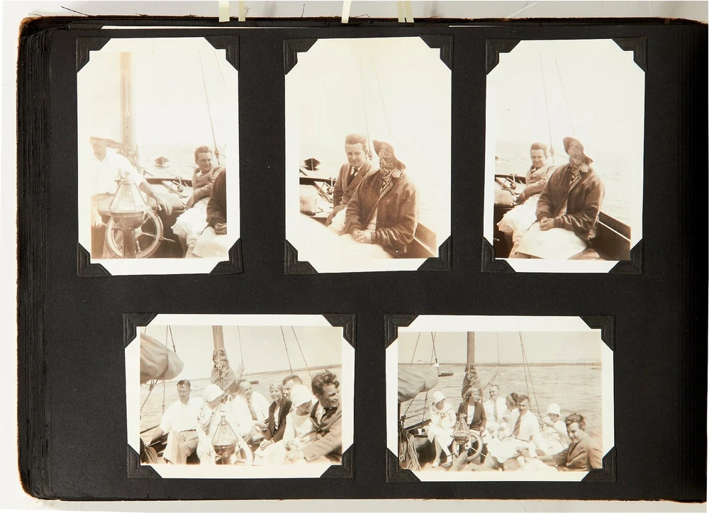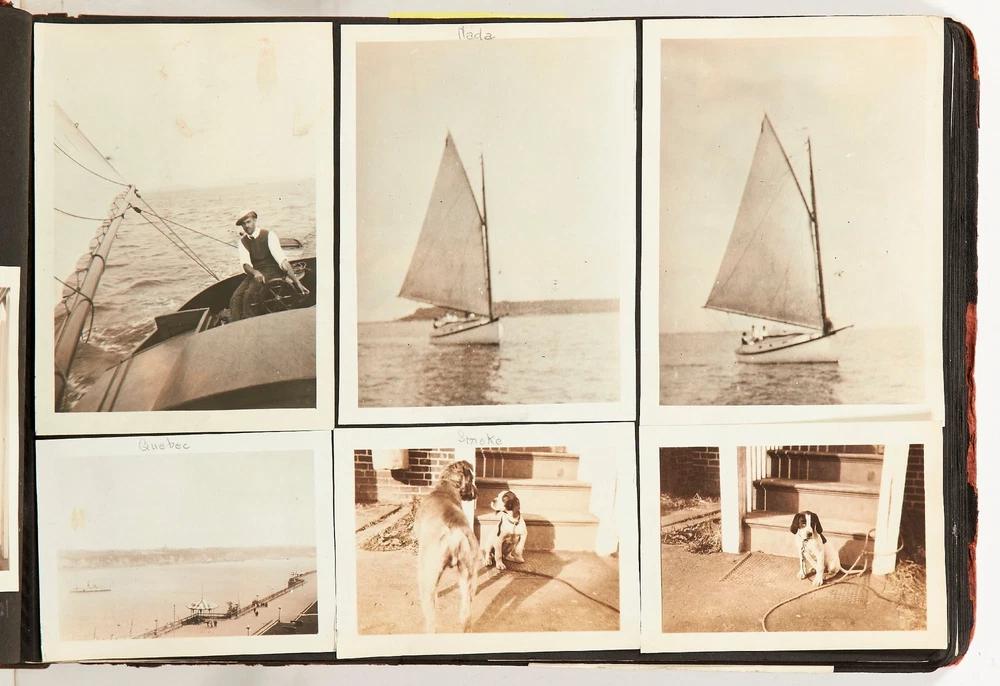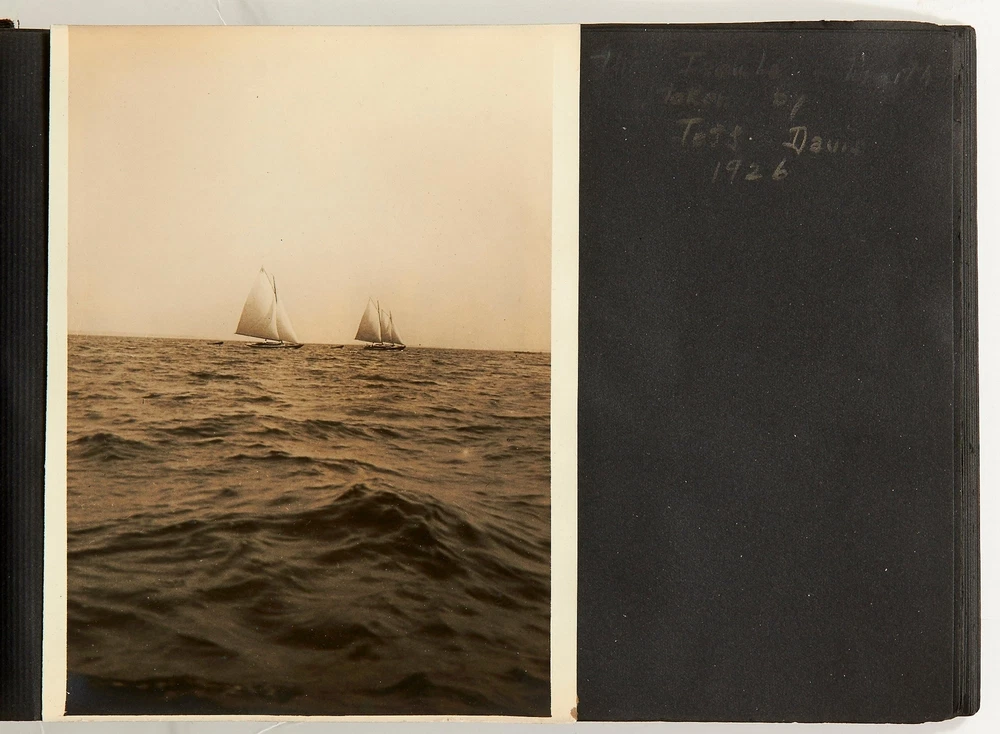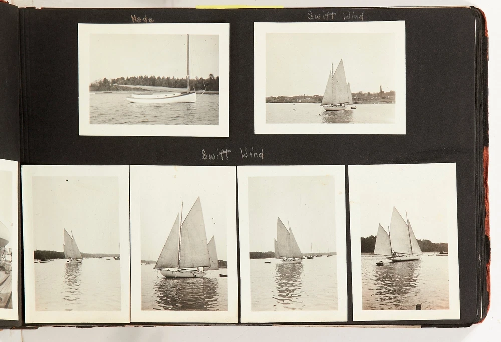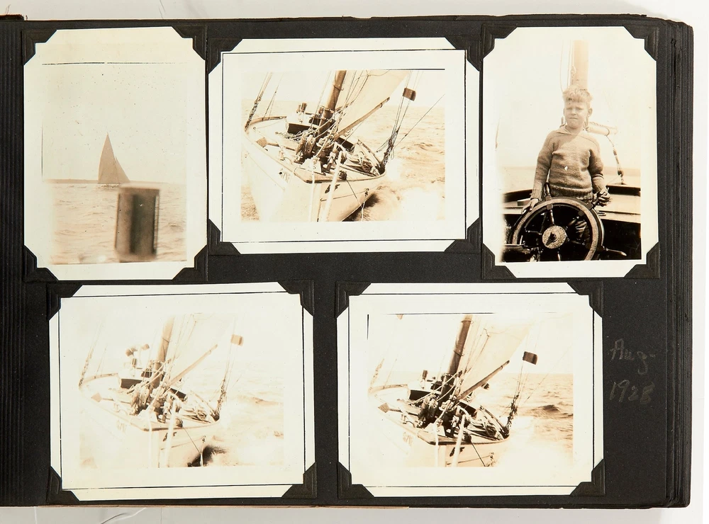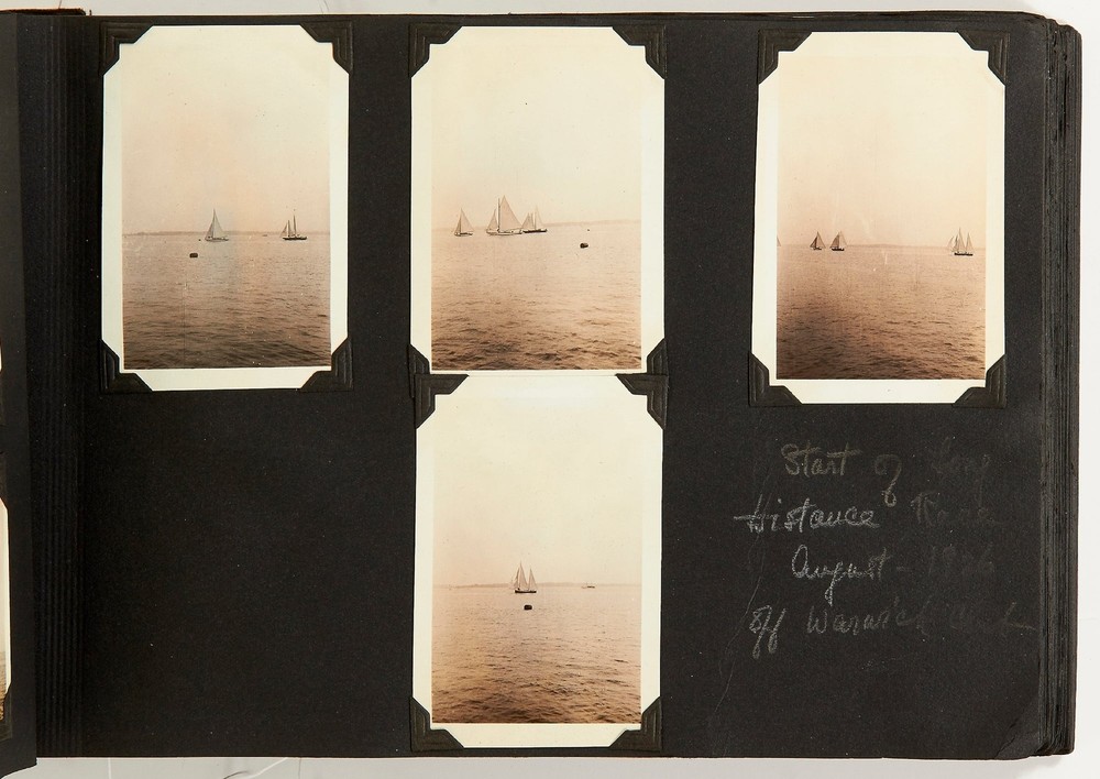 [Photo Album]: Two Photo Albums: New England Family, Boating, and the U.S.S. Shenandoah Author: PARSONS, E.H. and Phineas Title: [Photo Album]: Two Photo Albums: New England Family, Boating, and the U.S.S. Shenandoah Publication: Providence, Rhode Island: 1919-1926; 1926-1929 Description: Softcover. Two photo albums. Oblong quartos. Measuring 11" x 7". String-tied black textured leather over flexible paper boards with "Photographs" stamped in gilt on the front board. Contains 778 black and white or sepia toned gelatin silver photographs between the two albums, measuring between 2.5" x 3" and 5.5" x 8", some with captions. Both albums are very good with rips and tears on the boards; the later album's rear board is detached but present, with near fine photographs. Two photo albums kept by a member of the Parsons' family in New England between 1919 and 1929 mostly in Rhode Island and Connecticut. The albums contain a massive amount of photos, nearly 800, all capturing the upper middle class family, who made their money in the brass industry, through the decade of the 1920s. The family were avid boating enthusiasts and the album is full of photos of a variety of boats and small ships, as well as of people posing on and around them. Most of the vessels are named in the album including sailboats named *Swift Wind* and *Resolute*, as well as *Mischief* and the H.M.S. *Wraith*. These photos also show men in the rigging of the ships repairing and working on them as well as ships on land being built and painted. A variety of family members of all ages can be seen enjoying the excursions from grandma to the (obviously well-beloved) family dog. One group of photos shows the family on a trip to Quebec and includes the family boat, *Nada*, as well as photos of the various waterways. There is also a sketch of a sailboat laid-in, drawn on letterhead, which reads, "on board the Pontiac." Also documented throughout the album are a number of births in the family with photos of chubby newborns with their nurses, mothers, and fathers. Later in the album there are a number of photos of the USS *Shenandoah* which was the first of four U.S. Navy rigid airships. The 14 photos show the *Shenandoah* "tied up to the USS *Patoka*" docked in Newport in August of 1924. *Patoka* was the first ship used as an "airship tender" and in 1924 an "experimental mooring mast" was added to the oiler as well as a variety of accommodations for the crew of both the oiler and the airship. These photos show the *Shenandoah* moored in Newport shortly after the mast was erected. To test the mast and airship the *Shenandoah* flew from New Jersey to California and then continued on to Washington State, making it the first airship to fly across North America. A little over a year after it was constructed the airship was caught in a storm over Ohio and crashed. Also included in the album are obituaries for Phineas F. Parsons and Edmund Hayden (E.H.) Parsons, who appear to be the patriarchs of the family. Both men had ties with the brass industry. Phineas, the elder Parsons, who died at age 91 was a well-regarded member of the jewelry community with a career spanning over 60 years. E.H. died around the same time as his father after being "suddenly stricken" with an illness at 73. He spent 30 years in the brass trade before retiring to take over Locust Farms in Warwick. One photo shows the family on "Gramp's Birthday" on the farm in 1922. An interesting look at a New England family in the 1920s with an emphasis on the boating culture of a Rhode Island. Seller ID: 402520 Subject: Ephemera, Photography Between the Covers Between the Covers has been selling books for more than 30 years. Today we offer a wide ranging inventory, from Modern First Editions to General Used Books to Rare Archival Collections. We are active members of the Antiquarian Booksellers' Association of America (ABAA) and the International League of Antiquarian Booksellers (ILAB) . Terms All orders ship within two business days. Standard mail is USPS Media Mail. Expedited and international shipping are also available. We offer combined shipping on multiple orders. All books are guaranteed to be as described or they may be returned within 30 days of receipt for a full refund. This listing was created by Bibliopolis.