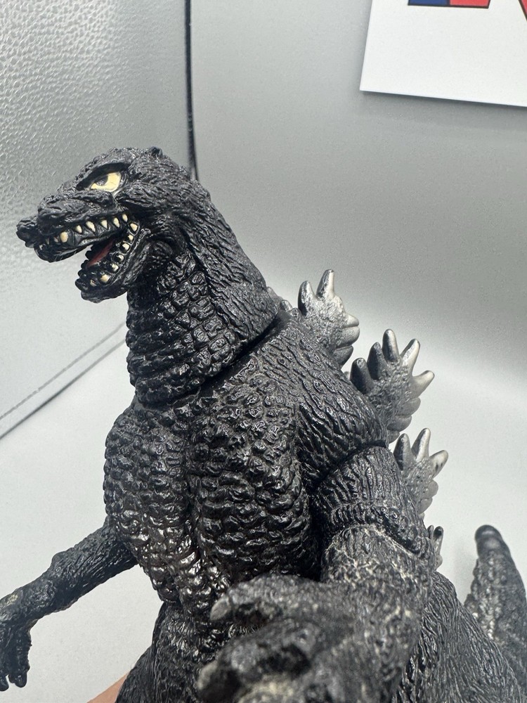 This Bandai Electric Godzilla toy from 1993 is a must-have for any monster toy collection. With its impressive design and intricate details, it is sure to delight fans of all ages. This particular toy features the iconic monster in its classic electric form, complete with glowing lights and moving parts. Perfect for collectors or kids, this Electric Godzilla toy is a great addition to any toy collection. Its unique design and durable construction make it a standout piece that is sure to impress. Whether you're a fan of monsters or just love great toys, this is a must-have item for your collection. - Still moves doesn’t make noise - Any questions feel free to ask