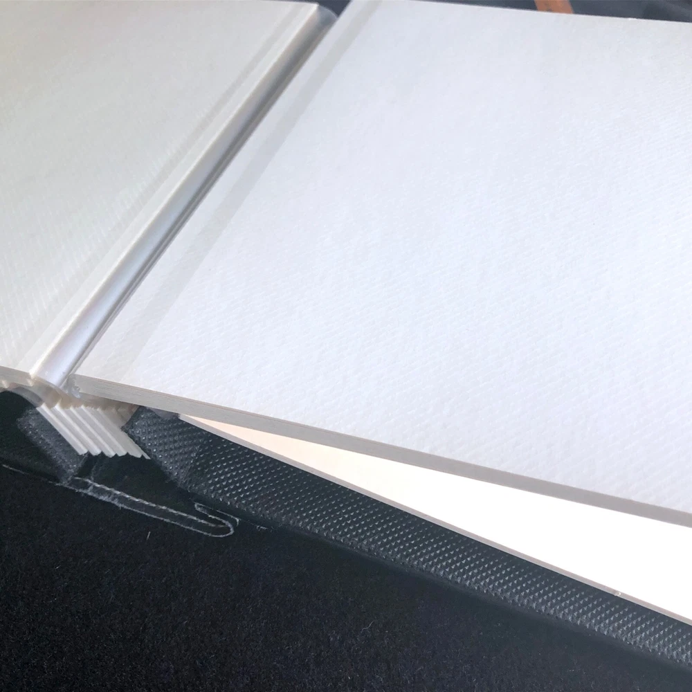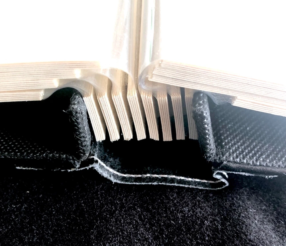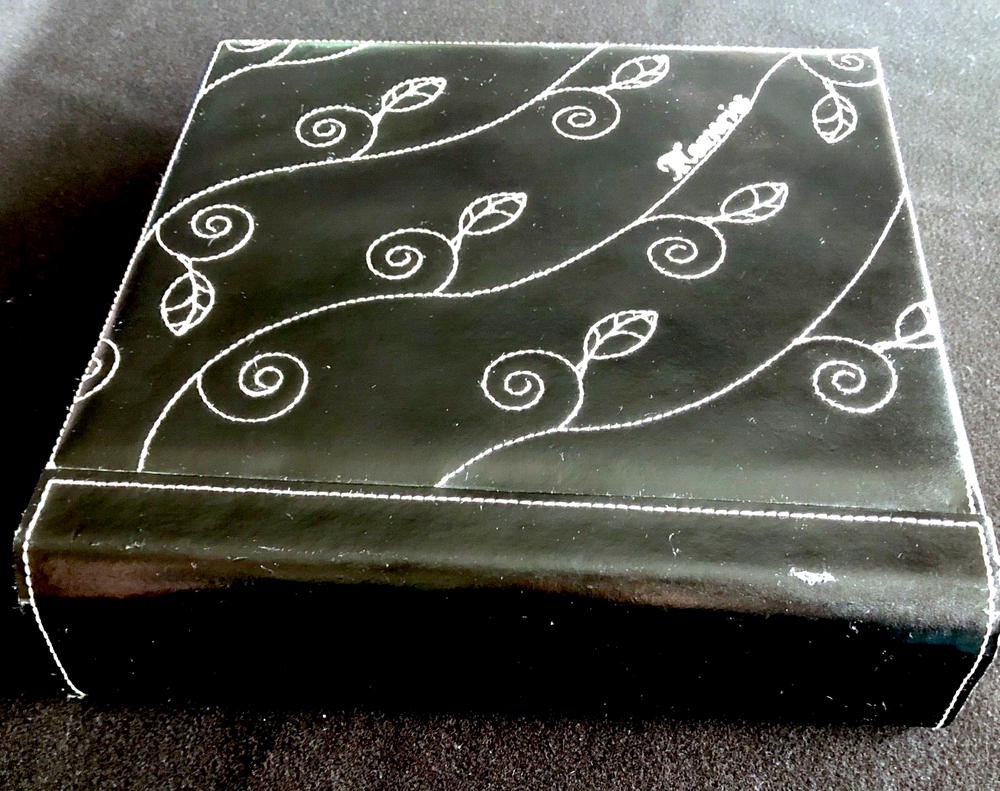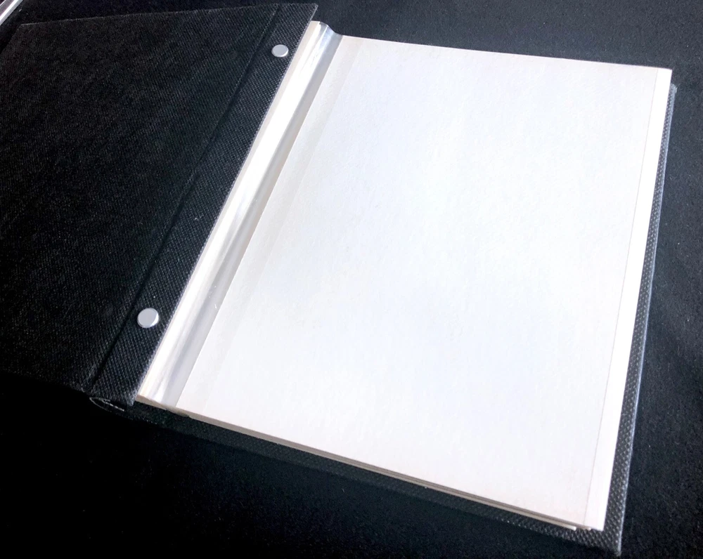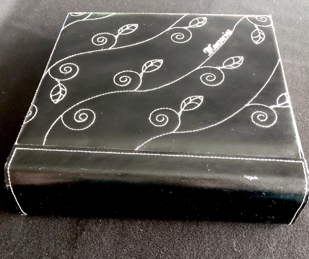 Vintage Elsa L, Inc. Photo Album Black Bonded Leather White Sewn Scrolled Leaf Design for a classic, decorative front cover. Size: 9" x 9 1/2" 80 pg (fronts & backs). Well made. Holds 160 photos. Pages are quality plastic. Just carefully pull the plastic up from the page and insert & position the photo. Then, press plastic back down, around the photo. NOTE: This type of album is easy to add names of those in the photos, locations, funny captions, etc., because you can place the photos in any position, leaving room for small sections of text to be added. Great for mixed sizes of photos! Feature: Post binding-- meaning you can add or remove the pages. Many albums are fixed. Please note photo of the "end" section. The book is in 5 page sections. Eight sections. Very nice construction! Bought to use. Never did. (Wanna see my unfinished scrapbooks? :-{ ) #toobusyorjustlazyIguess PayPal Ships with tracking within 24-48 hours, week days. Week-ends when we can. Stored in non-smoking home with no pets.