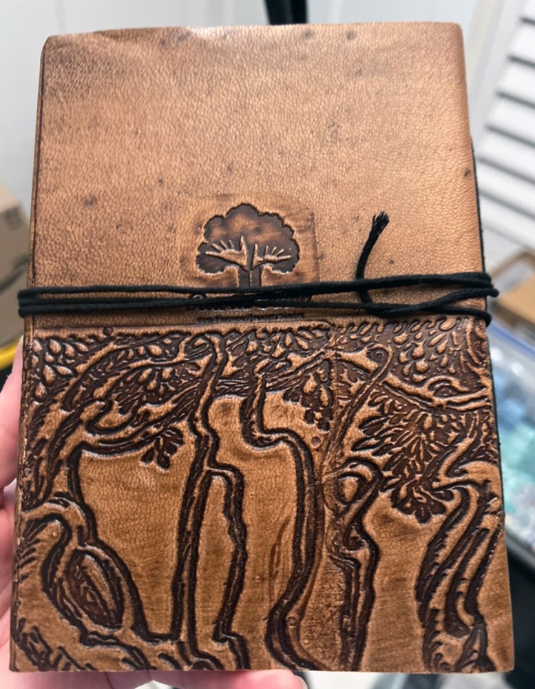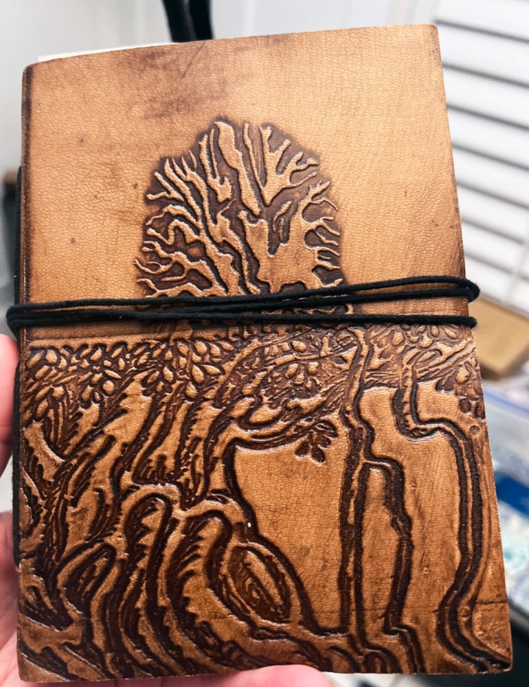 Discover the perfect companion for your thoughts, sketches, and plans with the Tree of Life Leather Bound Journal. Crafted from authentic real leather and featuring a beautiful embossed Tree of Life design, this journal is both elegant and functional, making it an ideal choice for writers, artists, and dreamers alike. Key Features • Authentic Real Leather : Made from high-quality, durable leather, this journal not only looks sophisticated but also feels luxurious to the touch. • Embossed Tree of Life Design : The intricate Tree of Life embossing on the cover symbolizes growth, wisdom, and life, adding a touch of inspiration to your daily writing. • Unruled Recycled Cotton Pages : Contains approximately 100 sheets [200 pages counting both sides] of tree-free, acid-free recycled cotton paper, providing you with the freedom to write, draw, or doodle without limitations. • Dimensions : Measuring 5 x 7 inches, this journal is compact yet substantial, perfect for carrying in your bag while offering plenty of space for your entries. • Coptic Binding : Features traditional Coptic binding, ensuring the journal lies flat when open, providing a seamless writing or sketching experience. • String Enclosure : Features a convenient string enclosure to keep your journal securely closed and your entries protected. • Eco-Friendly & Handmade : Each journal is handcrafted with care and made from eco-friendly materials, supporting sustainable practices. Suggested Uses Personal Diary : Capture your daily reflections, memories, and thoughts. Travel Journal : Document your travel experiences, itineraries, and souvenirs like tickets and photos. Art Journal : A creative space for sketching & doodling Gratitude Journal : Focus on positivity by writing down things you’re grateful for each day. Dream Journal : Keep track of dreams and interpret their meanings. Reading Journal : Record thoughts and reviews about books, track reading lists, and note favorite quotes. Film & TV Journal : Review and keep track of movies and TV shows watched, including thoughts and ratings. Songwriting & Poetry : Unleash your creativity by composing songs and poetry, capturing inspiration whenever it strikes. Baby Journal : Record milestones, first words, and special moments in a baby’s early years. Parent Journey : Document your experiences as a parent, from recording your child’s growth and achievements to capturing memorable stories. Quote Journal : Collect favorite quotes, poems, and inspirational sayings. Wine Journal : Record tastings, ratings, and notes on different wines. Pet Journal : Document the growth, health, and special moments of a beloved pet. Spiritual Journal : Reflect on spiritual journeys, meditations, and religious teachings. Why Choose This Journal? The Tree of Life Leather Bound Journal is more than just a notebook; it’s a personal haven for your ideas, memories, and creativity. Whether you’re planning your next adventure, sketching a masterpiece, writing a new song, or documenting your child’s precious milestones, this journal provides the perfect blend of style and functionality. Treat yourself or gift it to a loved one who appreciates the finer things in life. Experience the joy of writing in a journal that inspires and motivates. Order your Tree of Life Leather Bound Journal today and start your journey towards a more organized and creative life! #PersonalDiary #TravelJournal #ArtJournal #GratitudeJournal #DreamJournal #ReadingJournal #ParentJourney #Songwriting #Poetry #GardenJournal #BabyJournal #QuoteJournal #PrayerJournal #MusicJournal #WineJournal #PetJournal #FilmJournal #SpiritualJournal