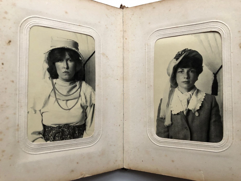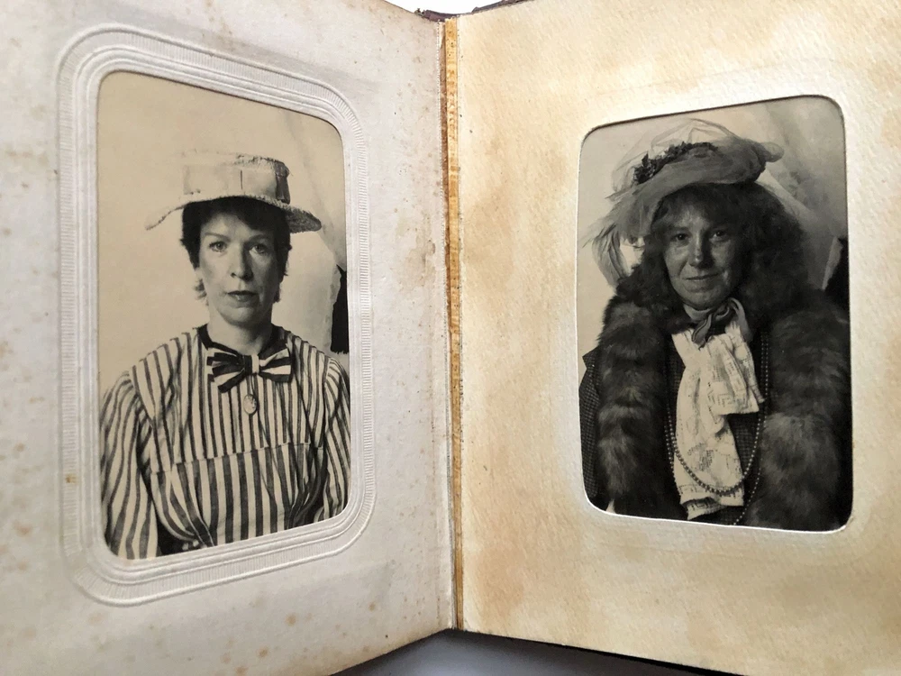 Leatherbound album of ca. 1960s "Victorian" style carte-de-visite photos of Patricia Tierney's friends gifted to her Author: (Estate of Patricia Tierney) Title: Leatherbound album of ca. 1960s "Victorian" style carte-de-visite photos of Patricia Tierney's friends gifted to her Description: Hardcover. Measuring 6 x 5 inches, with clasp, repurposing a ca. 1865 photo album by filling the 29 slots with what appear to be CDV sized photos, with Ms. Tierney's friends or family all dressed up in vintage clothing and hats to emphasize the 19th century motif. Inscribed in handsome calligraphic hand on the flyleaf: To Pat -- the most eminent Victorian of them all -- with love from her devoted "family." The 29 portraits, printed with a slightly yellow tint, the subjects all exhibiting the somber expressions well known in 19th century photographic portraits, speak of a very laborious effort that's paid off in this small and subtle livre d'artiste. Tierney was at one point engaged (in 1964) to Robert Prunier Davis (1929-2005), a painter, novelist and film-maker, and both of them apparently lived at some point at 60 Sutton Place South, a desirable address. Unclear from online info if they did indeed get -- and stay -- married. Probably assembled in the late 1960s. Good. Seller ID: H14705 Subject: Photography RAREBOOKSTORE RareBookStore is a long-established eBay seller specializing in used and rare books in all fields-plus prints, ephemera, maps, music, photography, and the occasional painting. We sell good books at good prices and want you to be satisfied with your purchase. Be sure to add us to your "favorite" sellers and check back to see new items listed daily! We pride ourselves on our high standards, high eBay ratings, and helpful staff, so please contact us directly if you encounter any issues. Standard shipping is via USPS Media Mail. Expedited options are available at checkout. Payment is expected within 2 business days unless otherwise arranged. Our warehouse is staffed Monday-Friday and we respond to inquiries as quickly as possible. We hope you enjoy browsing our selection of great books. Happy reading! This listing was created by Bibliopolis.