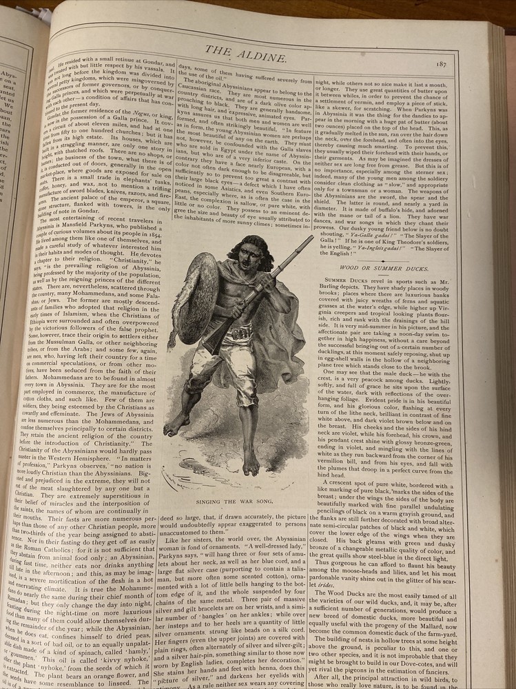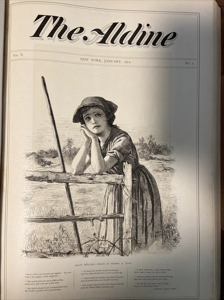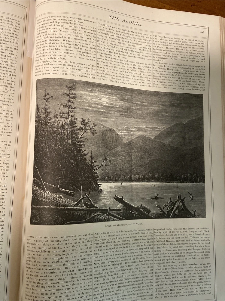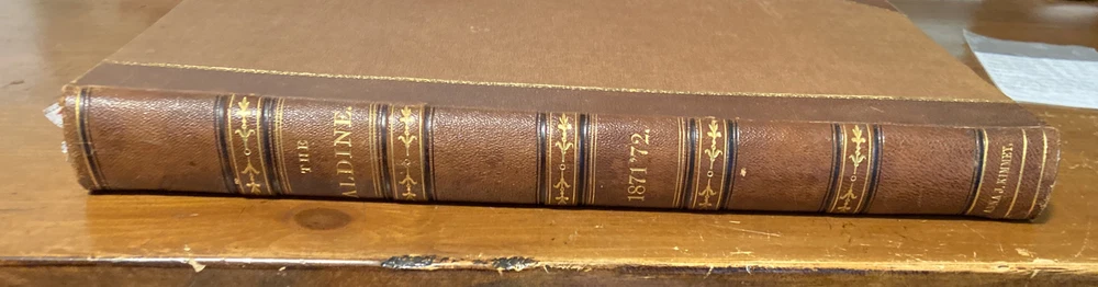 Exceptional 1871-1872 The Aldine Typographic Art Journal Volume IV; Adirondacks. 16.25 x 11.25 inches. Gorgeous 3/4 leather binding over cloth boards in near fine condition. Contents secure and clean. January 1871 through December 1872. Please message with any questions.