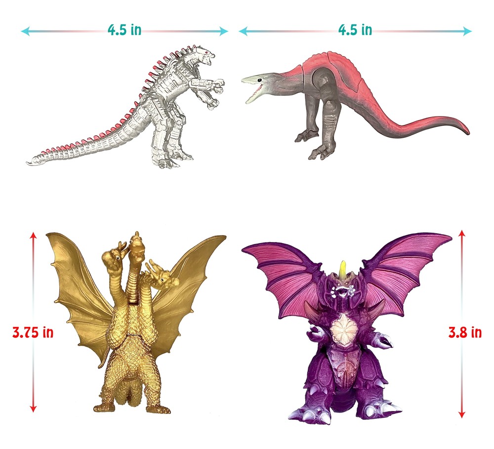 Exclusive Set of 10 Godzilla vs Toys Movable Joint Action Figures, King of The Monster Dinosaur Shin Ultima Gamera Ghidorah Skull Crawler Destoroyah Mecha Mechagodzilla Cake Toppers Pack 7 figures with movable joints, 3 figures with immovable joints: bring more fun than ever High Quality and Details. These figures can not only be used as a cake toppers set, but also be a great addition to your Legendary Godzilla Collection. Height & Length: Up to 4.5 inches in length, up to 3.8 inches in height Superior Quality: Passed CPC Children Safety Certificate, ASTM F963-16/17 and CPSIA standards. Environmental friendly, nontoxic, non-radioactive and waterproof. Worry-free shopping: We offer the Professional Customer Support: reply to your inquiry within 12-24 hours, send replacements within next 12-24 business hours. If you have any issues about your purchase, please give us a chance to make things right. We will be more than happy to assist you.