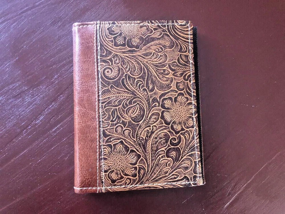 FAUXLEATHER HAND TOOLED LOOK PHOTO ALBUM 7X5" EUC! This 24 page photo album is a must-have for anyone who loves rustic southwestern décor. The album is book-bound and made of high-quality faux leather in a beautiful saddle tan color. The hand-tooled look gives it a unique and authentic feel that will make it a conversation piece in any room. Measuring 7x5 inches, this album is perfect for holding cherished memories and special moments. Its slip-in style makes it easy to add and remove photos, while keeping them safe and secure. Whether you're a photography enthusiast or just looking for a stylish way to display your favorite pictures, this album is sure to impress.