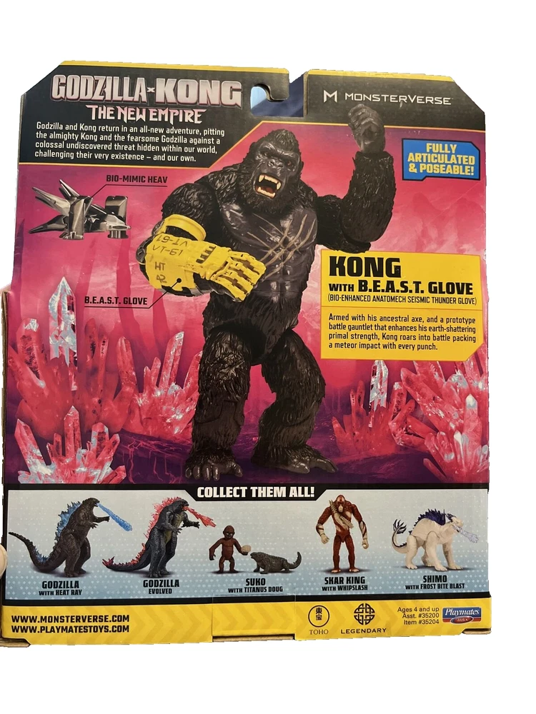 Immerse yourself in the epic battle of Godzilla X Kong with this action-packed toy set featuring the mighty King Kong equipped with the powerful B.E.A.S.T glove. Made by trusted brand Playmates, this toy set promises endless hours of fun and excitement for fans of all ages. With its intricate details and high-quality materials, this toy set is sure to delight collectors and enthusiasts alike. The 2024 release of this Godzilla-themed toy set is perfect for those who love monsters and robots. Get your hands on this rare and sought-after item now and add it to your collection. Don't miss out on this amazing opportunity!