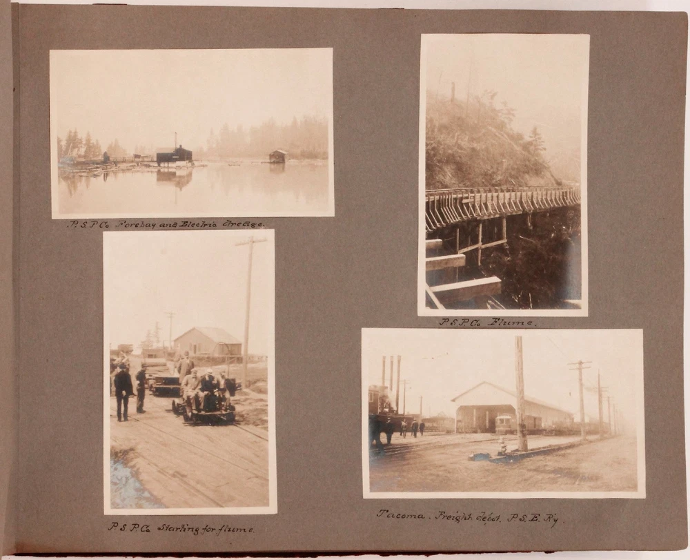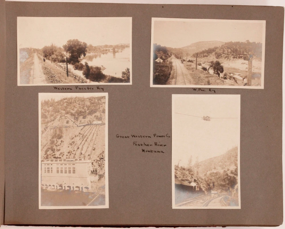 [Photo Album]: Trip to Pacific Coast. Summer 1909. [California, Nevada, Colorado, Washington, and Montana] Author: DICK, Fairman R. Title: [Photo Album]: Trip to Pacific Coast. Summer 1909. [California, Nevada, Colorado, Washington, and Montana] Description: Softcover. Oblong folio. Flexible leather over paper boards, stamped with "Photographs" in gilt on front wrap. Wear at the edges of the wrappers, spine mostly eroded away, but sound and internally about fine. Album contains approximately 175 captioned photographs of a trip by seven employees (named on the "title page," with Dick identified as photographer) of the Lee Higginson & Co. investment banking firm (of Boston, Chicago, and New York) to Montana and Washington state. The album seems to be something of a combination of a sightseeing tour and an inventory of properties that the firm either held or were interested in acquiring in the West. Higginson & Co., aligned with other firms like J.P. Morgan, took over and consolidated many small power generation companies in the West, forming The Montana Power Company. The photographs are very nicely composed and all identified, illustrating mines, powerhouses, railways, dams, and other industrial sites from Portland to Tacoma, Seattle, Butte, Billings, Rainbow and Crooked Falls on the Missouri River, Mad River, etc. Interspersed are many vernacular photos of local interest: a horse stampede in Bozeman, a futuristic "gasoline railway engine," an overturned and wrecked train, Native Americans, street cars, etc., but probably the majority are of commercial investment properties. A generous selection of images of power generation in the West. Seller ID: 390957 Between the Covers Between the Covers has been selling books for more than 30 years. Today we offer a wide ranging inventory, from Modern First Editions to General Used Books to Rare Archival Collections. We are active members of the Antiquarian Booksellers' Association of America (ABAA) and the International League of Antiquarian Booksellers (ILAB) . Terms All orders ship within two business days. Standard mail is USPS Media Mail. Expedited and international shipping are also available. We offer combined shipping on multiple orders. All books are guaranteed to be as described or they may be returned within 30 days of receipt for a full refund. This listing was created by Bibliopolis.