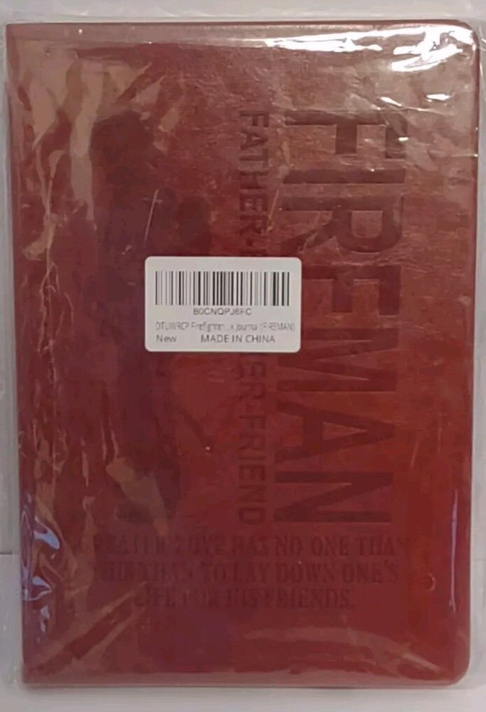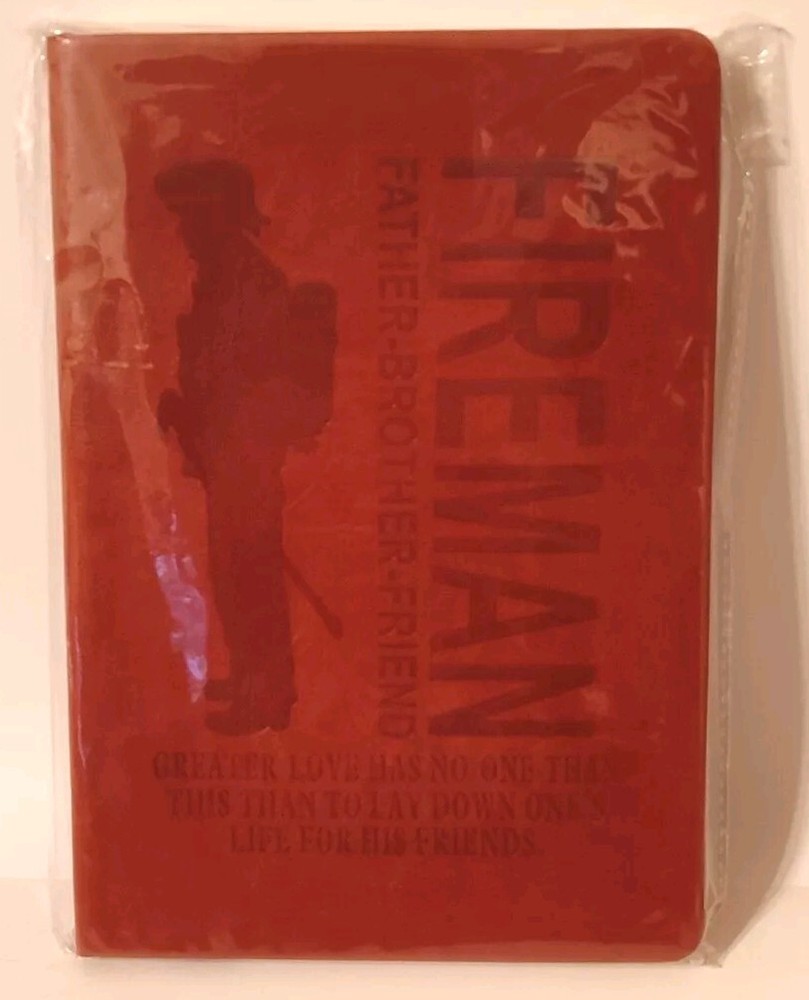 This Firefighter's personal lined journal is a great gift for the firefighter in your life. With 192 pages, it provides ample space for writing notes, sketches, or anything else that comes to mind. The journal is leather bound in brown. The front cover depicts a Firefighter and reads: FIREMAN •FATHER • BROTHER • FRIEND GREATER LOVE HAS NO ONE THAN THIS THAN TO LAY DOWN ONE'S LIFE FOR HIS FRIENDS. The cover material is made of high-quality leather, ensuring durability and longevity. Whether you're a firefighter or just looking for a unique gift, this journal is perfect for you.