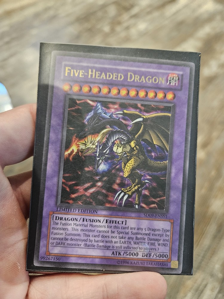 Unleash the fiery breath of the Five Headed Dragon SD09-ENSS1, a must-have for any Yu-Gi-Oh! TCG enthusiast. From the thrilling Structure Deck: Dinosaur's Rage, this card depicts the mightiest of dragons, poised to dominate the battlefield. Its fearsome presence can turn the tides in your favor, providing a strategic edge in your duels. A gem for collectors and players alike, the Five Headed Dragon card is a staple for those looking to enhance their game with raw power and versatility. Dive into the world of Yu-Gi-Oh! TCG with this iconic piece from the beloved Dinosaur's Rage deck, and let the fire breathe life into your next gaming experience.