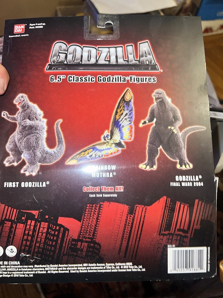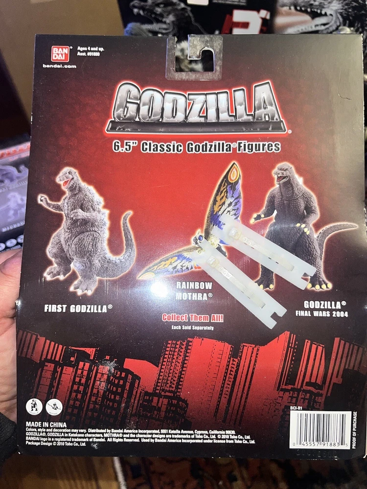 Four brand new Bandai Godzilla toys 2009/10 Mint and still ‘sealed’ to package. In amazing condition Rainbow Mothra First Godzilla Destroyah Mechagodzilla Selling as a lot. All four for one price. Zero interest in separating - trying to get through a massive toy acquisition Lot CC Please let me know if you have any questions Capitol Salvage - Facebook and Instagram