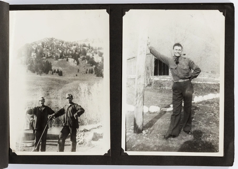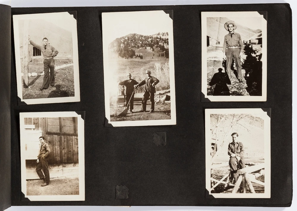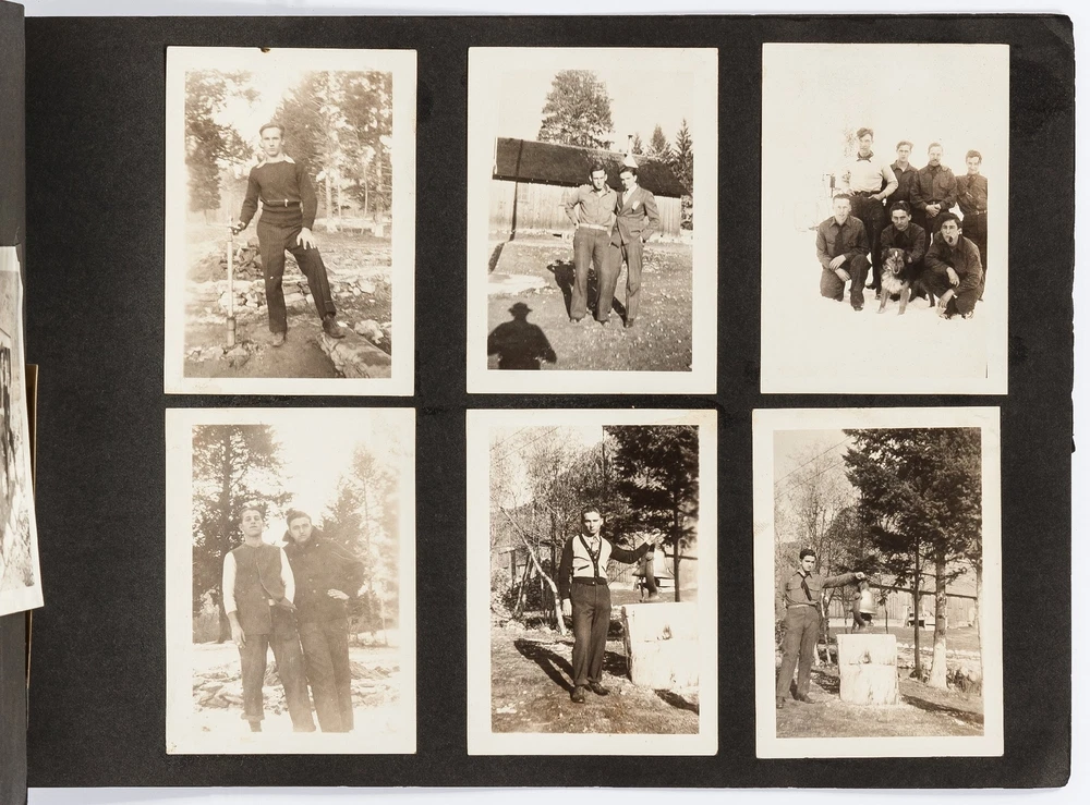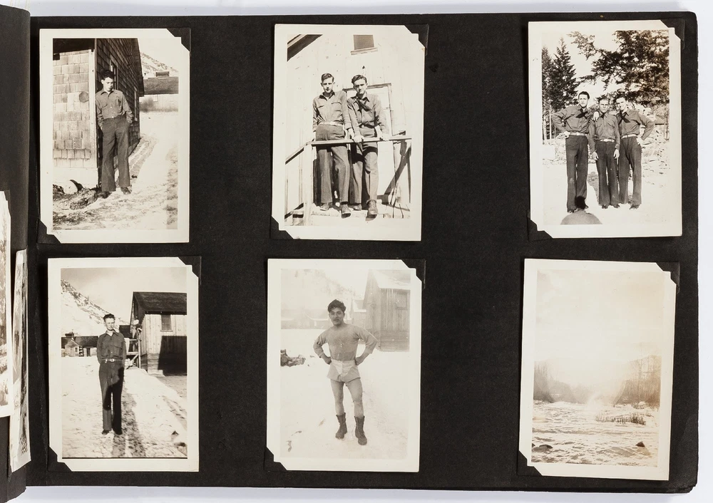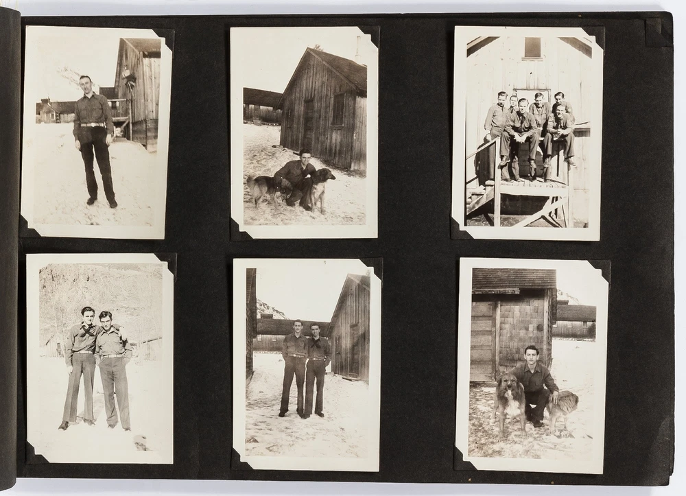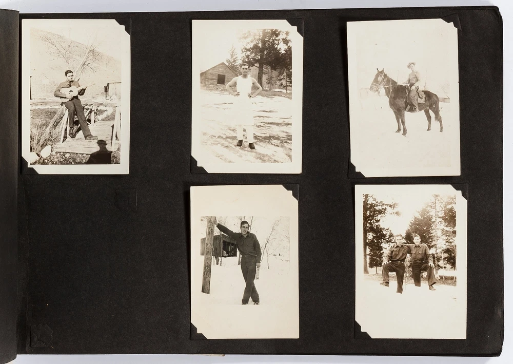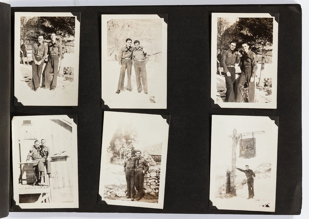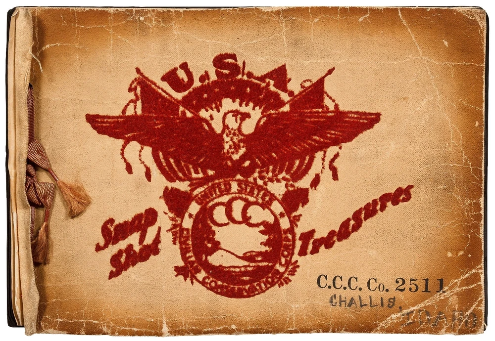 [Photo Album]: C.C.C. Co. 2511 Author: KENJEVARIK, Frank Title: [Photo Album]: C.C.C. Co. 2511 Publication: Challis, Idaho: [1935] Description: Softcover. Oblong quarto. Measuring 12" x 8". String-tied tan leather wrappers with CCC seal in red felt on the front wrap. Contains 107 sepia toned or black and white gelatin silver photographs measuring between 2.5" x 3.5" and 5" x 7", some with captions. Very good album lacking the rear wrapper with creasing and tiny tears with near fine photographs. A photo album kept by Frank Kenjevarik while serving with the Civilian Conservation Corps in 1935. The first two pages include autographs from his fellow CCC campmates which include their names, addresses, and dates. Also included are three laid in CCC patches and an envelope from a photo processing studio in Kansas. Following this are photos of Kenjevarik and his fellow campmates around the site posed in group photos around their cabins, playing guitar, in the forest, riding horses, and with the camp dog. The landscape of the surrounding area is seen throughout the photos with mountains, wooded areas, and snow covered fields. This particular camp was involved with the forestry department of the CCC and many of the photos show them around stacks of wood. One captioned photo shows a friend of Kenjevarik at a camp in Oregon. Idaho had numerous CCC camps, although some were forced to shut down after a severe winter left them ravaged. Not much is written about the 2511, but through the photographs they appear to have been a tight knit group of men happy to have employment. The CCC, created in 1933, was known as Franklin Roosevelt's "forest army." It drew recruits from the relief rolls and employed them in conservation and forestry jobs in support of the National Park Service and other public works projects. Originally CCC recruits were given two sets of clothes, a blue denim work outfit and a repurposed World War I style Army olive drab uniform for dress. According to National Park Service history, when Franklin Roosevelt visited a camp near Warm Springs, he was surprised by the poor quality of the uniforms and asked the Department of the Navy to design a special CCC uniform. These were in widespread use by 1939. As the country recovered from the Depression and began to gear up for military defense, enrollment in the CCC decreased. In mid-1942, Congress voted to disband it. A nice collection of photographs documenting young men's work with the CCC in Idaho. Seller ID: 418449 Subject: Ephemera, Photography Between the Covers Between the Covers has been selling books for more than 30 years. Today we offer a wide ranging inventory, from Modern First Editions to General Used Books to Rare Archival Collections. We are active members of the Antiquarian Booksellers' Association of America (ABAA) and the International League of Antiquarian Booksellers (ILAB) . Terms All orders ship within two business days. Standard mail is USPS Media Mail. Expedited and international shipping are also available. We offer combined shipping on multiple orders. All books are guaranteed to be as described or they may be returned within 30 days of receipt for a full refund. This listing was created by Bibliopolis.