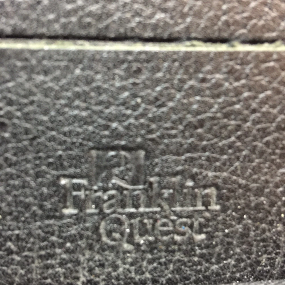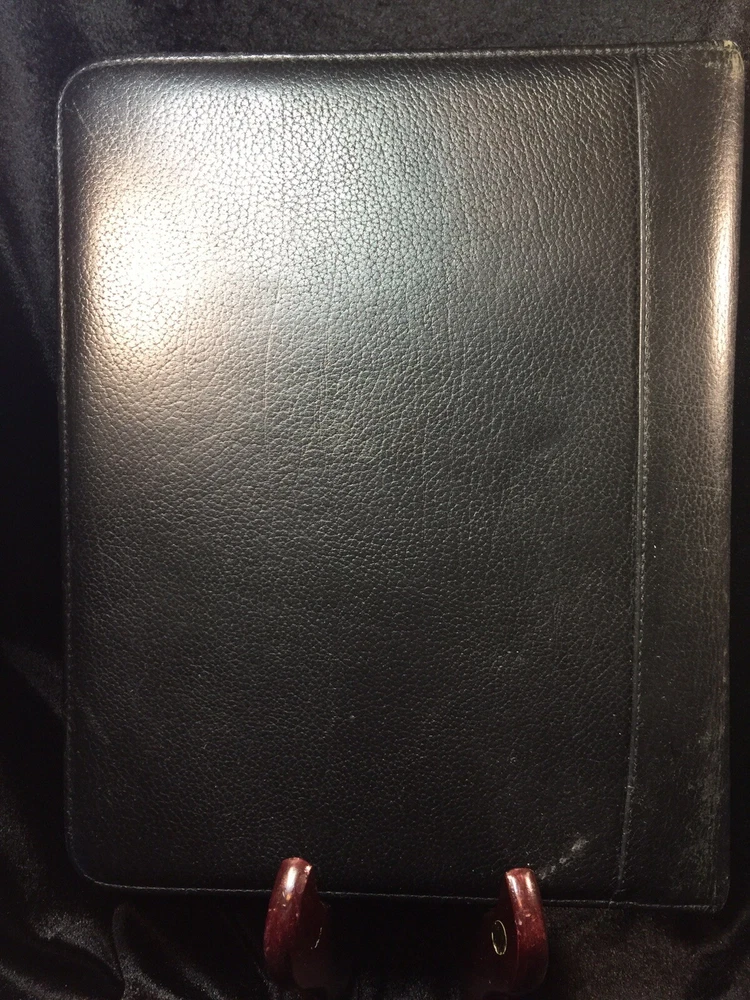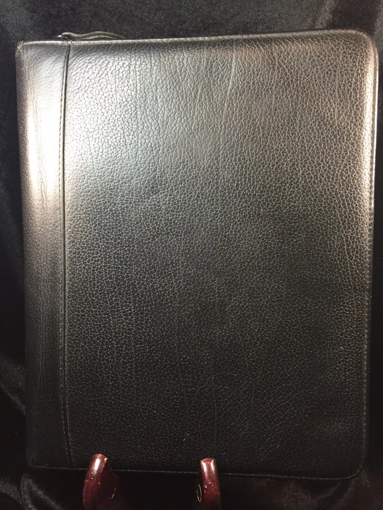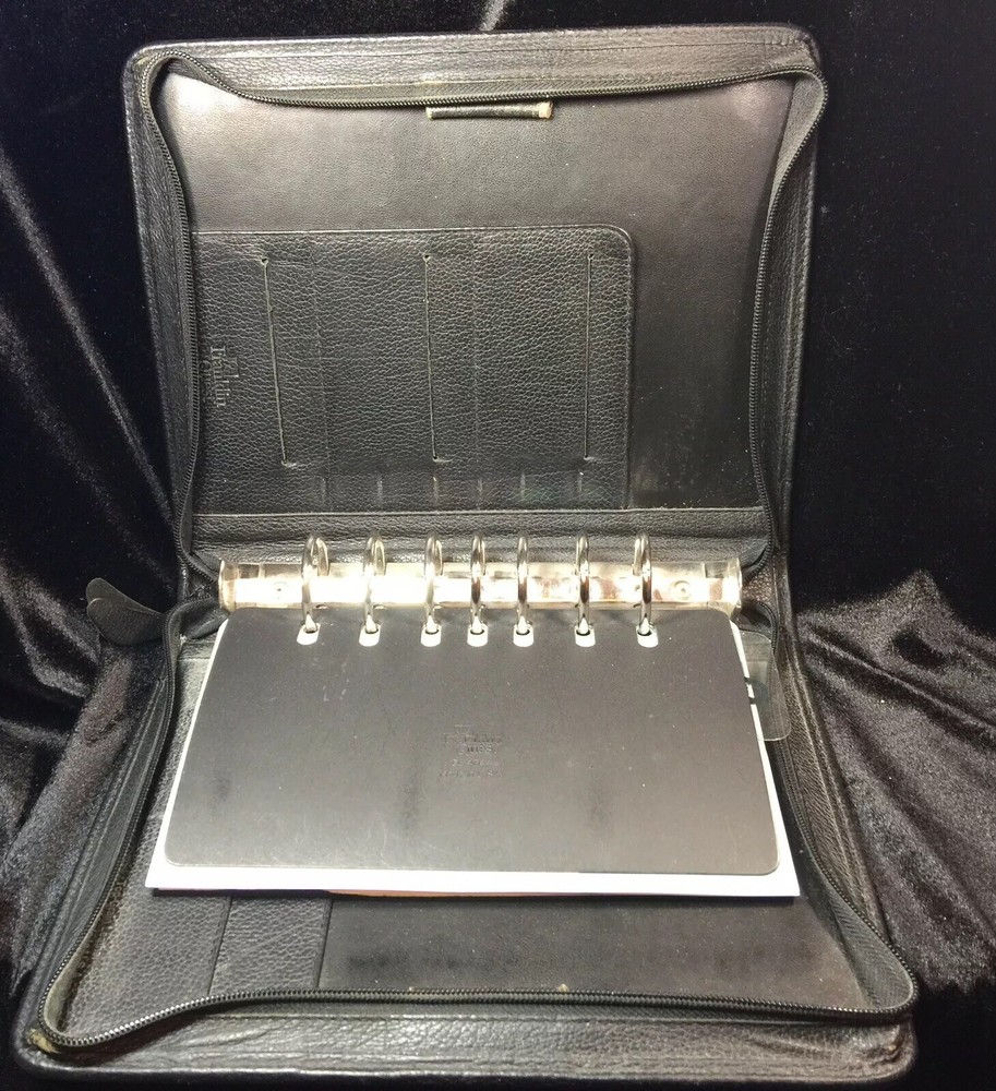 Vintage Franklin Quest Black Planner Journal Calendar 7- 1.5” rings CL4044 USA. Condition is Used. Shipped with USPS Priority Mail. Franklin Quest Binder Top Grain Black Leather 7 Rings USA~ Vintage Good pre-owned. Signs of previous wear and use. Zip around leather binder in black. Measures:- 11" H x 9" W x 2" D. Holds pages 5.5" x 8.5". Seven 1.5" W Rings. - Made of Top Grain Leather. - Interior Left Side - 1 medium size side entry slip pocket, 2 small inserts 2 pen holders- 1 on each side Ruler - Interior Right Side - 1 larger expandable slip pocket and 2 lower business card slip pockets. All items are professionally packed for safe arrival. Thank you for visiting my shop. Please choose “Ingebjorg” as a favorite shop to see new listings every day! Enjoy your purchase. US bookcase