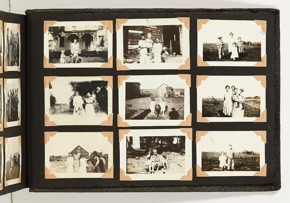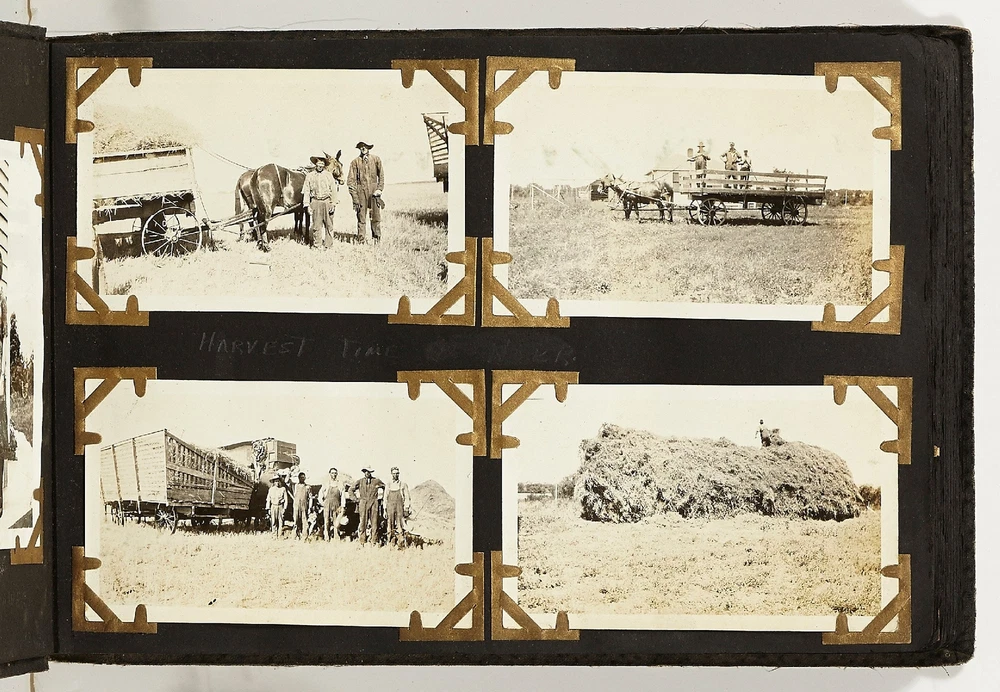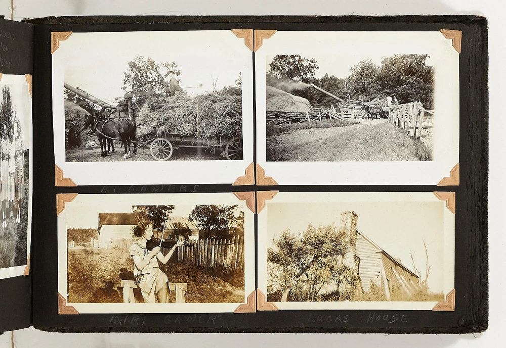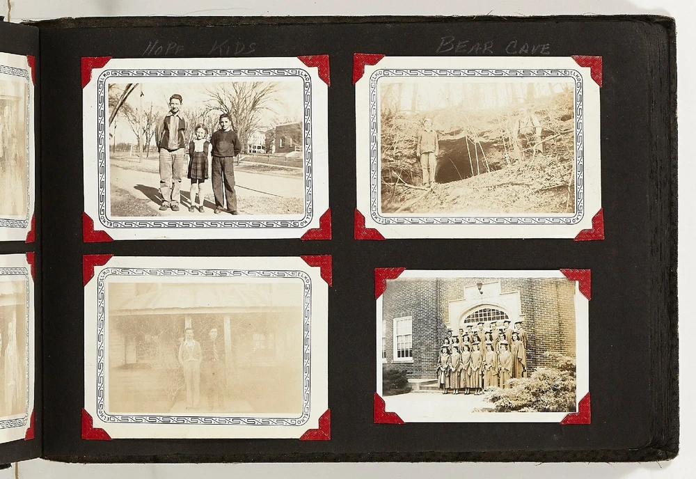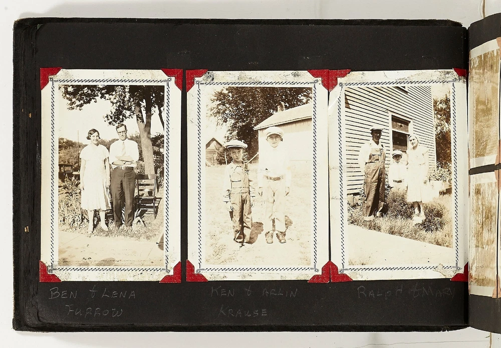 [Photo Album]: Missouri Farm Family Author: LINHARDT, Fred Title: [Photo Album]: Missouri Farm Family Publication: Missouri: 1920-1950 Description: Softcover. Small oblong octavo. Measuring 11" x 7.5". String tied flexible black leather over paper boards. A collection of 300 black and white or sepia toned photographs most measuring between 2" x 3" and 4" x 6", some with captions. Near fine with some edgewear with near fine or better photographs. A photo album closely documenting life on family farms in Missouri's Gasconade County, near the city of Hermann between 1920 and 1950. A large majority of the photos are from the late 1920s through World War II. Many of the pictures show posed snapshots of family members, many identified as having Linhardt, Gawer, Krause, Helm, or Bardelmeier surnames. Besides the group photos there are automobiles, houses, and barns from various farms. There is also a series of photos showing harvest time and threshing with horse-drawn wagons, tractors, and steam powered farm equipment. Photos of the surrounding landscape include images of a steel truss bridge, the "bear cave," and various farm animals and pets. Other photos from a Hermann city parade show an all-female marching band and a decorated bicycle and rider. One photo shows a father and daughter playing a banjo and guitar and another shows a girl playing a violin. There is also a 1930s souvenir Christmas card photo of the famous country singing group, The Carter Family, showing A.P., Sara, and a young Maybelle Carter. An extensive look at farm and family life in Missouri over three decades with a vernacular charm and interesting images. Seller ID: 396263 Subject: Americana, Ephemera, Photography Between the Covers Between the Covers has been selling books for more than 30 years. Today we offer a wide ranging inventory, from Modern First Editions to General Used Books to Rare Archival Collections. We are active members of the Antiquarian Booksellers' Association of America (ABAA) and the International League of Antiquarian Booksellers (ILAB) . Terms All orders ship within two business days. Standard mail is USPS Media Mail. Expedited and international shipping are also available. We offer combined shipping on multiple orders. All books are guaranteed to be as described or they may be returned within 30 days of receipt for a full refund. This listing was created by Bibliopolis.