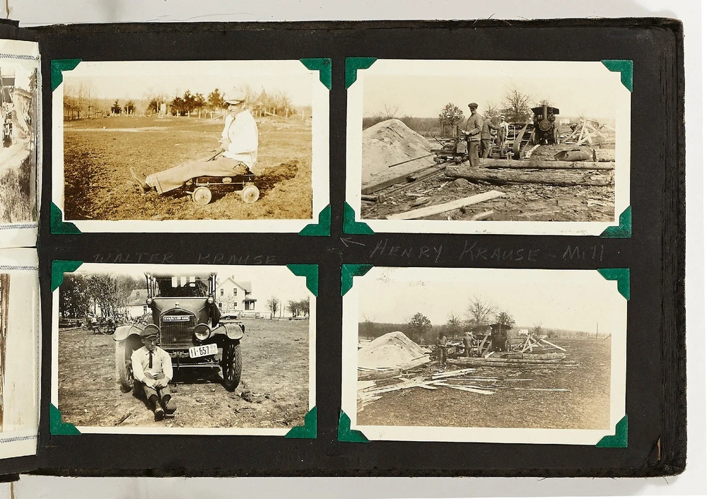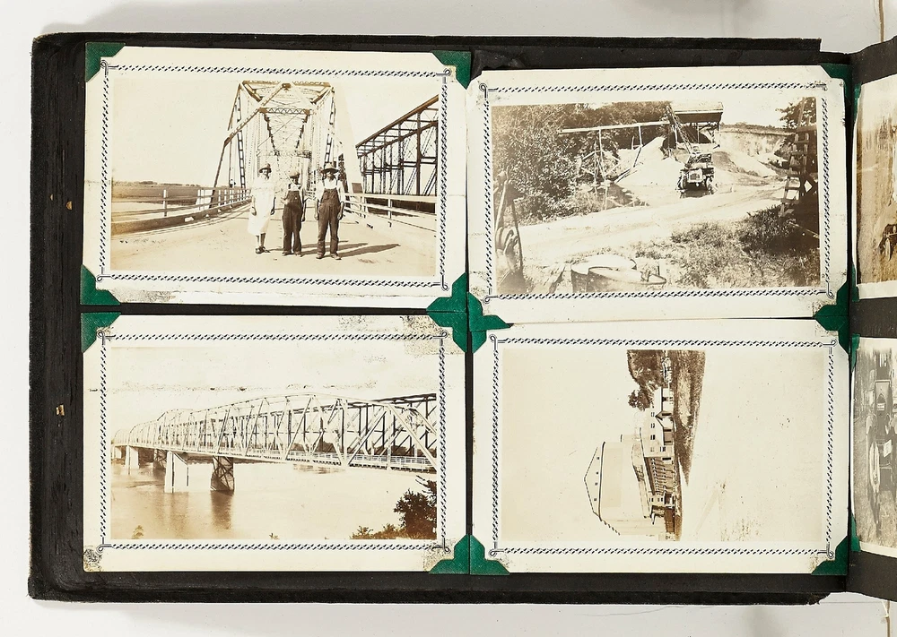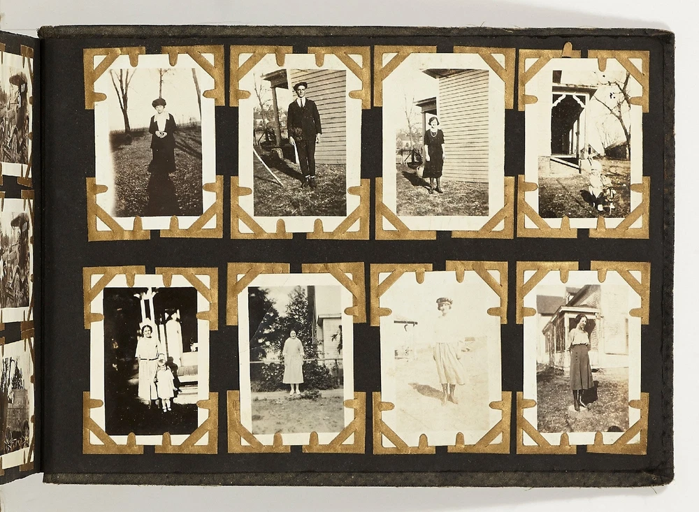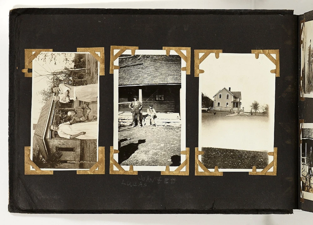 [Photo Album]: Missouri Farm Family Author: LINHARDT, Fred Title: [Photo Album]: Missouri Farm Family Publication: Missouri: 1920-1950 Description: Softcover. Small oblong octavo. Measuring 11" x 7.5". String tied flexible black leather over paper boards. A collection of 300 black and white or sepia toned photographs most measuring between 2" x 3" and 4" x 6", some with captions. Near fine with some edgewear with near fine or better photographs. A photo album closely documenting life on family farms in Missouri's Gasconade County, near the city of Hermann between 1920 and 1950. A large majority of the photos are from the late 1920s through World War II. Many of the pictures show posed snapshots of family members, many identified as having Linhardt, Gawer, Krause, Helm, or Bardelmeier surnames. Besides the group photos there are automobiles, houses, and barns from various farms. There is also a series of photos showing harvest time and threshing with horse-drawn wagons, tractors, and steam powered farm equipment. Photos of the surrounding landscape include images of a steel truss bridge, the "bear cave," and various farm animals and pets. Other photos from a Hermann city parade show an all-female marching band and a decorated bicycle and rider. One photo shows a father and daughter playing a banjo and guitar and another shows a girl playing a violin. There is also a 1930s souvenir Christmas card photo of the famous country singing group, The Carter Family, showing A.P., Sara, and a young Maybelle Carter. An extensive look at farm and family life in Missouri over three decades with a vernacular charm and interesting images. Seller ID: 396263 Subject: Americana, Ephemera, Photography Between the Covers Between the Covers has been selling books for more than 30 years. Today we offer a wide ranging inventory, from Modern First Editions to General Used Books to Rare Archival Collections. We are active members of the Antiquarian Booksellers' Association of America (ABAA) and the International League of Antiquarian Booksellers (ILAB) . Terms All orders ship within two business days. Standard mail is USPS Media Mail. Expedited and international shipping are also available. We offer combined shipping on multiple orders. All books are guaranteed to be as described or they may be returned within 30 days of receipt for a full refund. This listing was created by Bibliopolis.