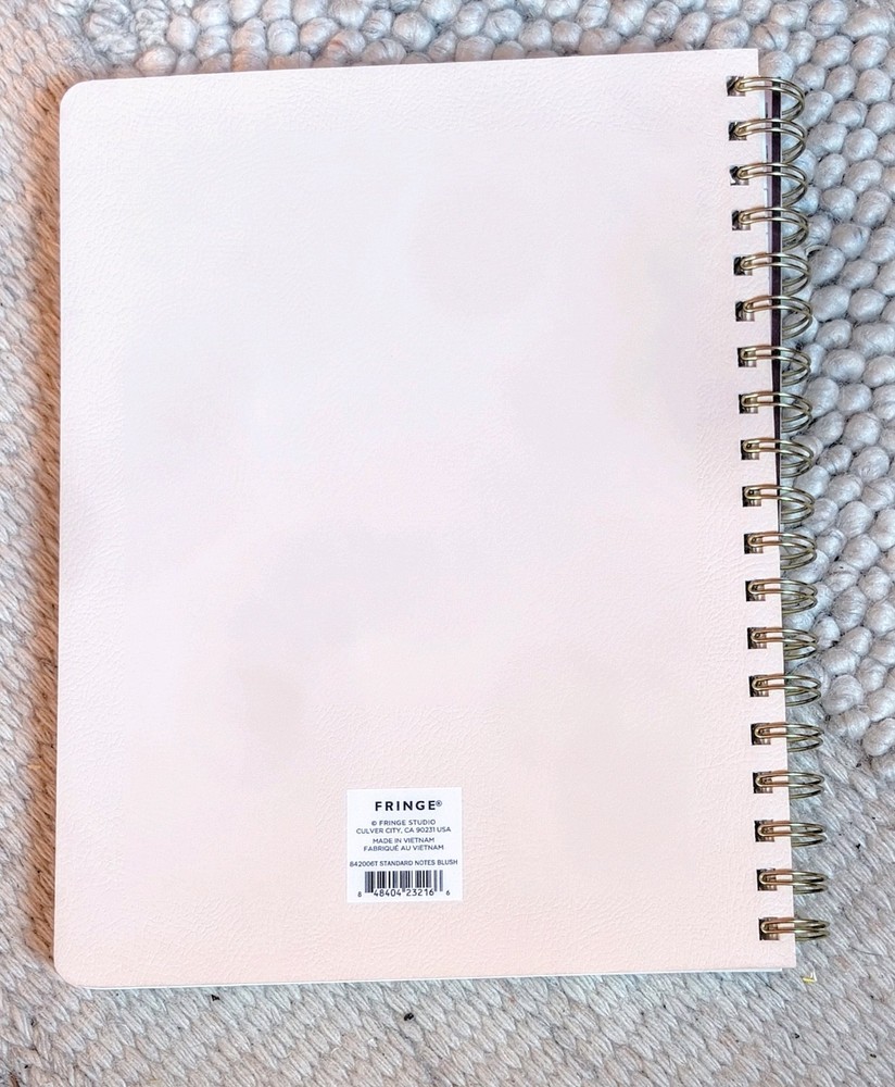 The Fringe Studio Notebook Journal in BLUSH is a high-quality, spiral-bound notebook featuring 192 lined pages made of premium materials. The faux leather cover adds a touch of sophistication, making it a stylish and functional choice for writing, drawing, or note-taking. With its brand reputation for quality and attention to detail, this journal is perfect for those looking for a durable and attractive option for organizing their thoughts and ideas.