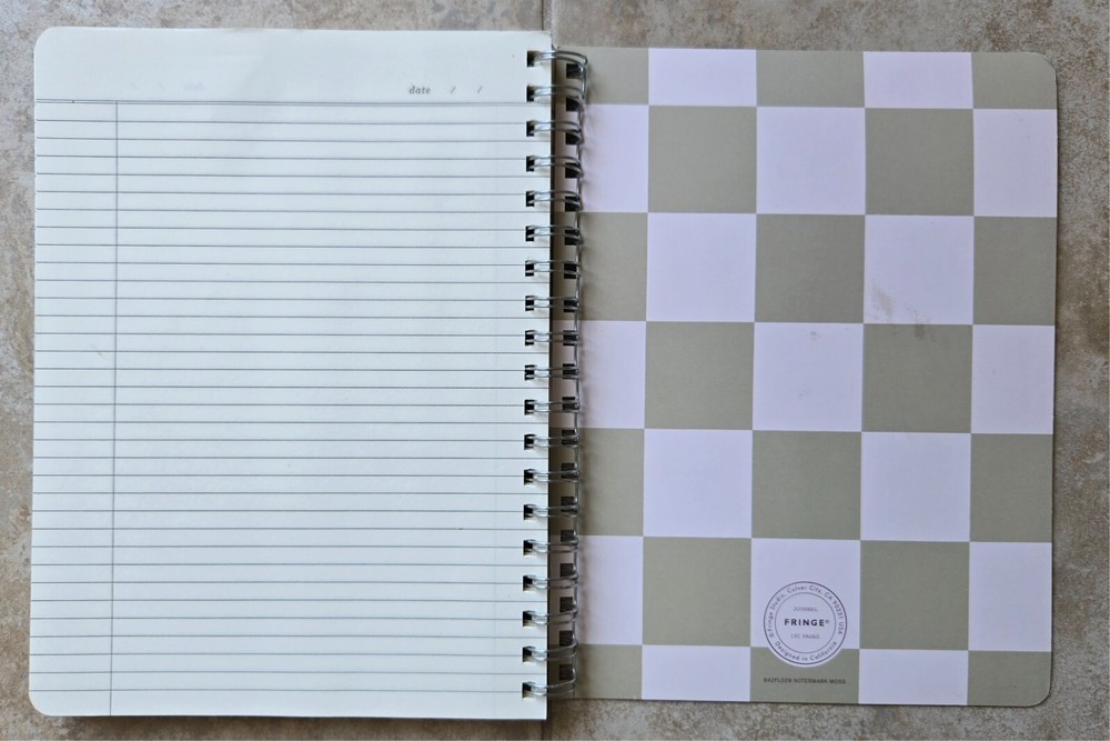 Fringe Studio Notebook Journal #842FL029 NOTESMARK MOSS 192 lined pages 9.75" x 7.25" Spiral/Wire bound. Condition: NWT - New with Tags ~~ Please note that there's a small stain inside of the back cover that can be seen on the third photo. Due to this minor defect, the price of the item is 3.00 less than the regular ones. ~~