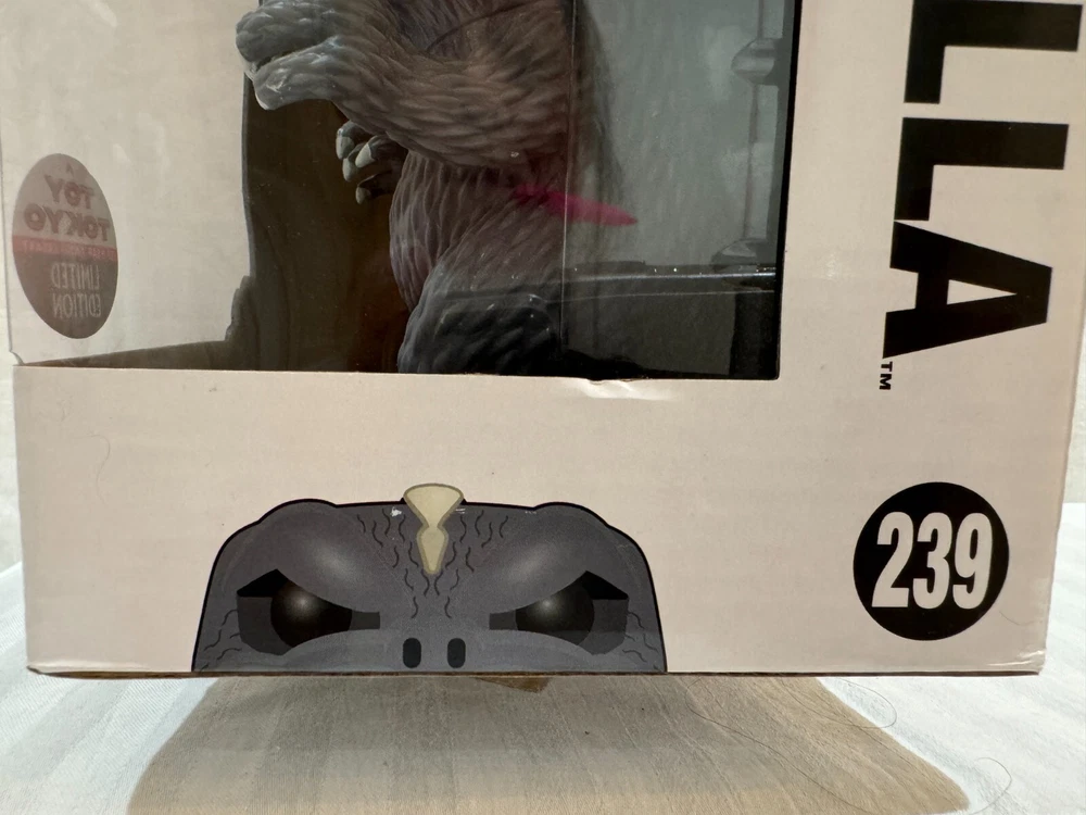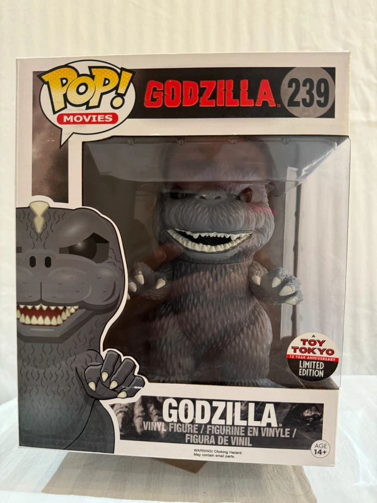 This Funko Pop! vinyl figure features the iconic Godzilla character in a limited edition black and white design. This exclusive collectible was released at the Toy Tokyo booth during the 2015 New York Comic-Con. The packaging has some slight imperfections, but is in like new condition for the most part. The Pop! Godzilla #239 figure is made of high-quality vinyl material and is part of the Funko collection. It comes in its original box and includes the box number. This exclusive item is a must-have for any Godzilla fan and collector. UPC: 849803069513
