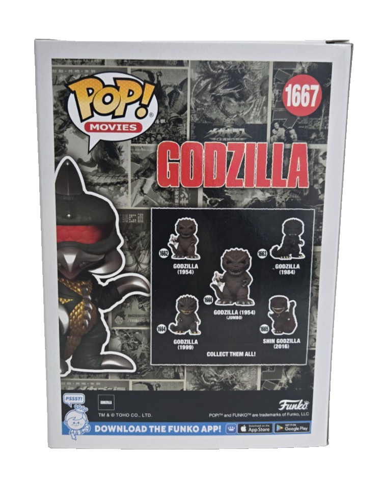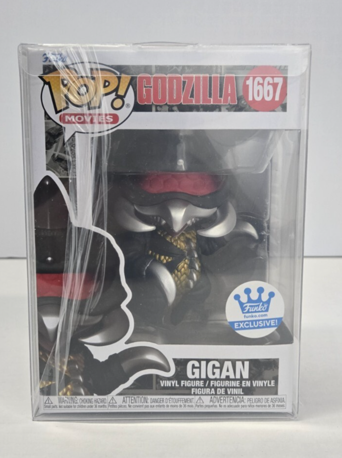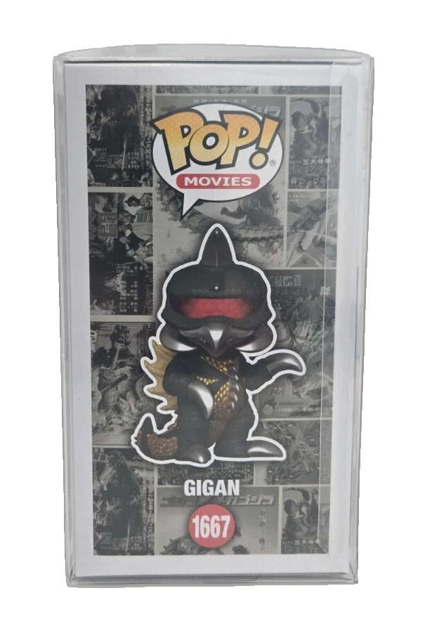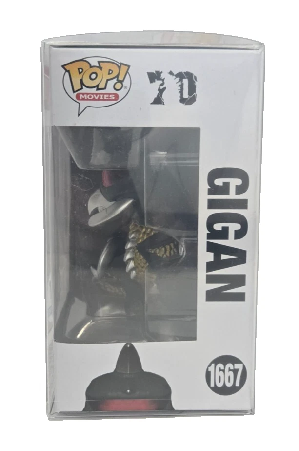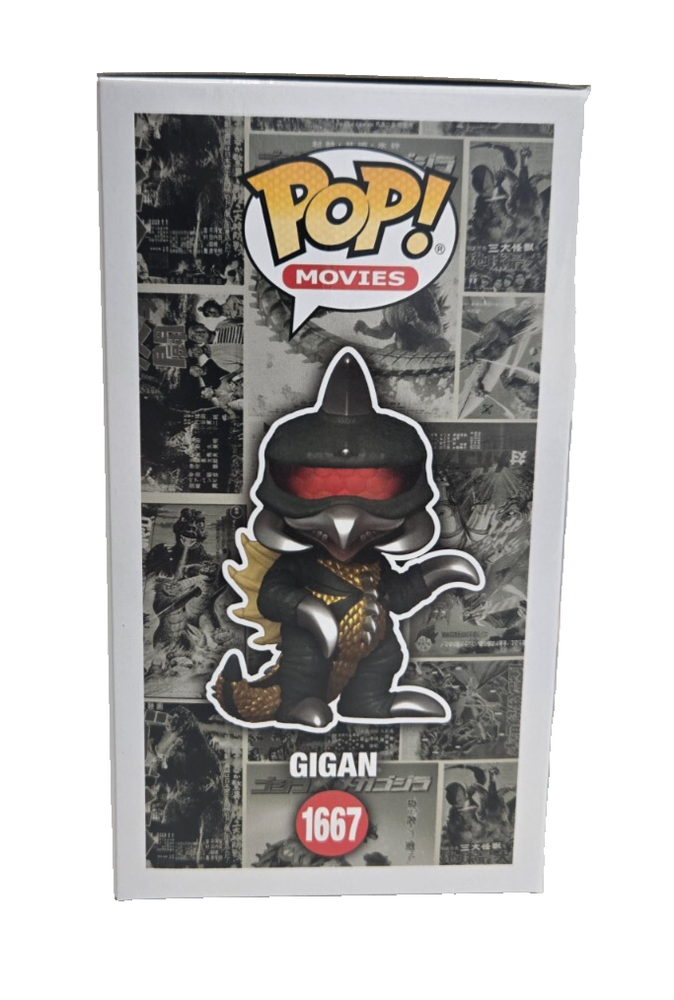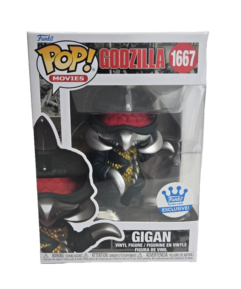 The product is a Funko Pop! Vinyl figure of Godzilla's Gigan character, part of the exclusive Godzilla 70th Anniversary series. This standard-sized vinyl figure comes in box number 1667 and includes a free mystery Pop! It falls under the Movies and Action & Adventure theme, making it a must-have collectible for fans of the Godzilla franchise. The Funko brand ensures quality and authenticity, making this item a valuable addition to any collector's display.